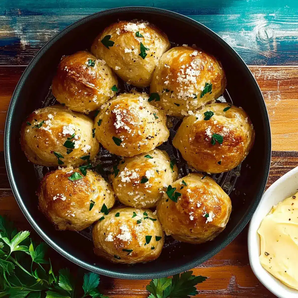 Protect the Tops: Avoid brushing the tops of the dough balls with butter initially to keep the herbs from burning and to ensure even browning.