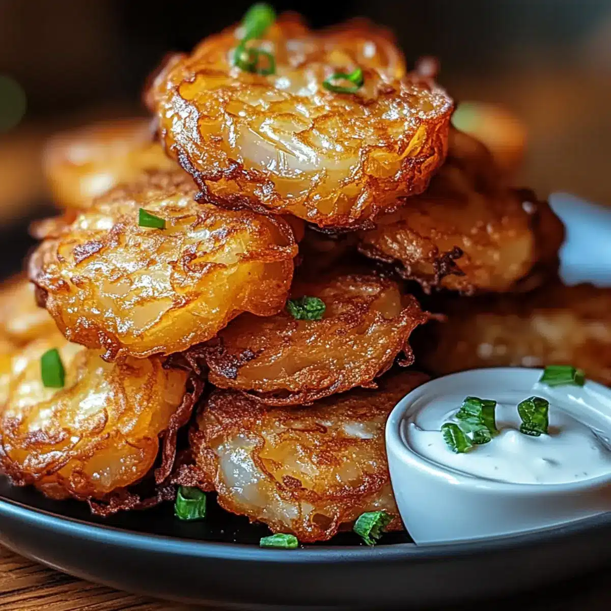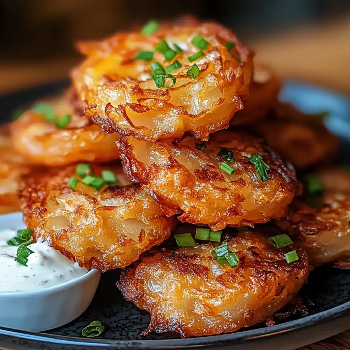 Zesty Spicy Aioli: This tangy sauce brings a kick that enhances the savory onion flavor while complementing the fritters’ texture.