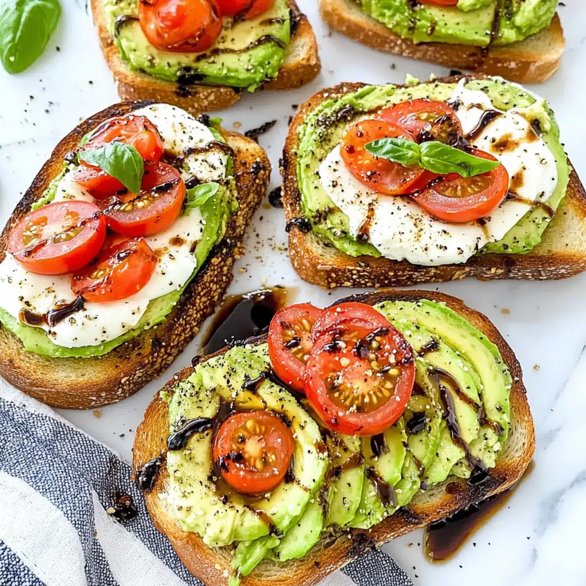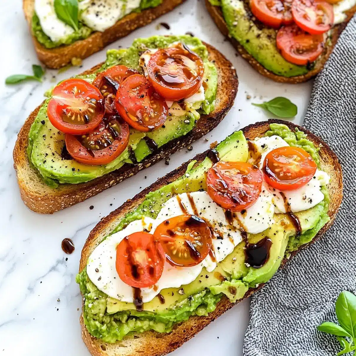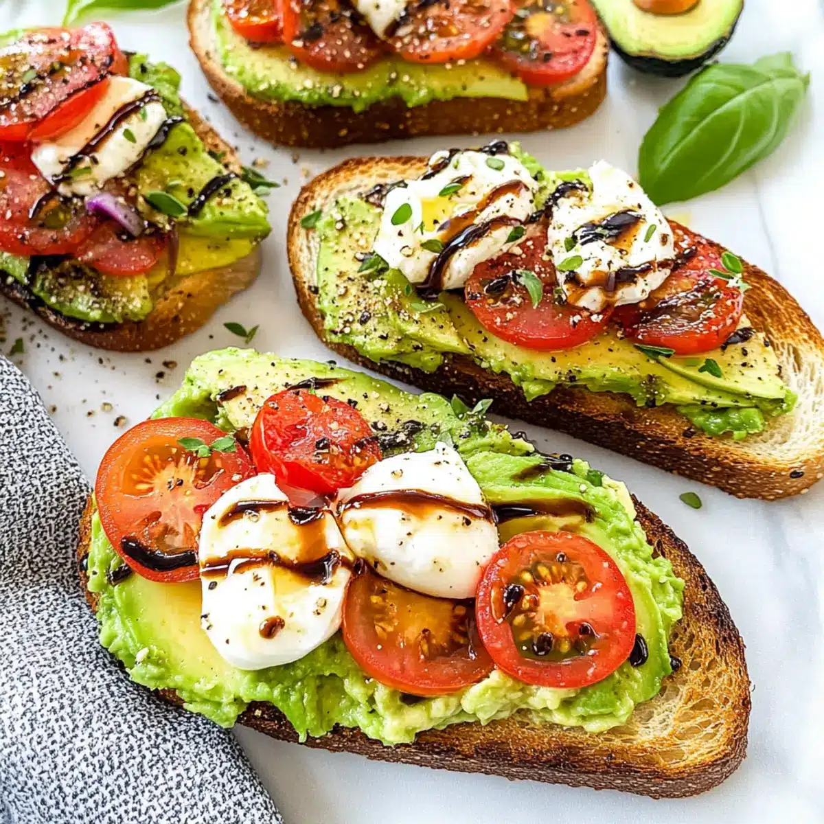 For a Caprese variation, layer thinly sliced cherry tomatoes and creamy mozzarella ball halves atop the mashed avocado. Drizzle with balsamic reduction and extra olive oil for added flavor. Finish by adding a few fresh basil leaves to enhance the taste and presentation.