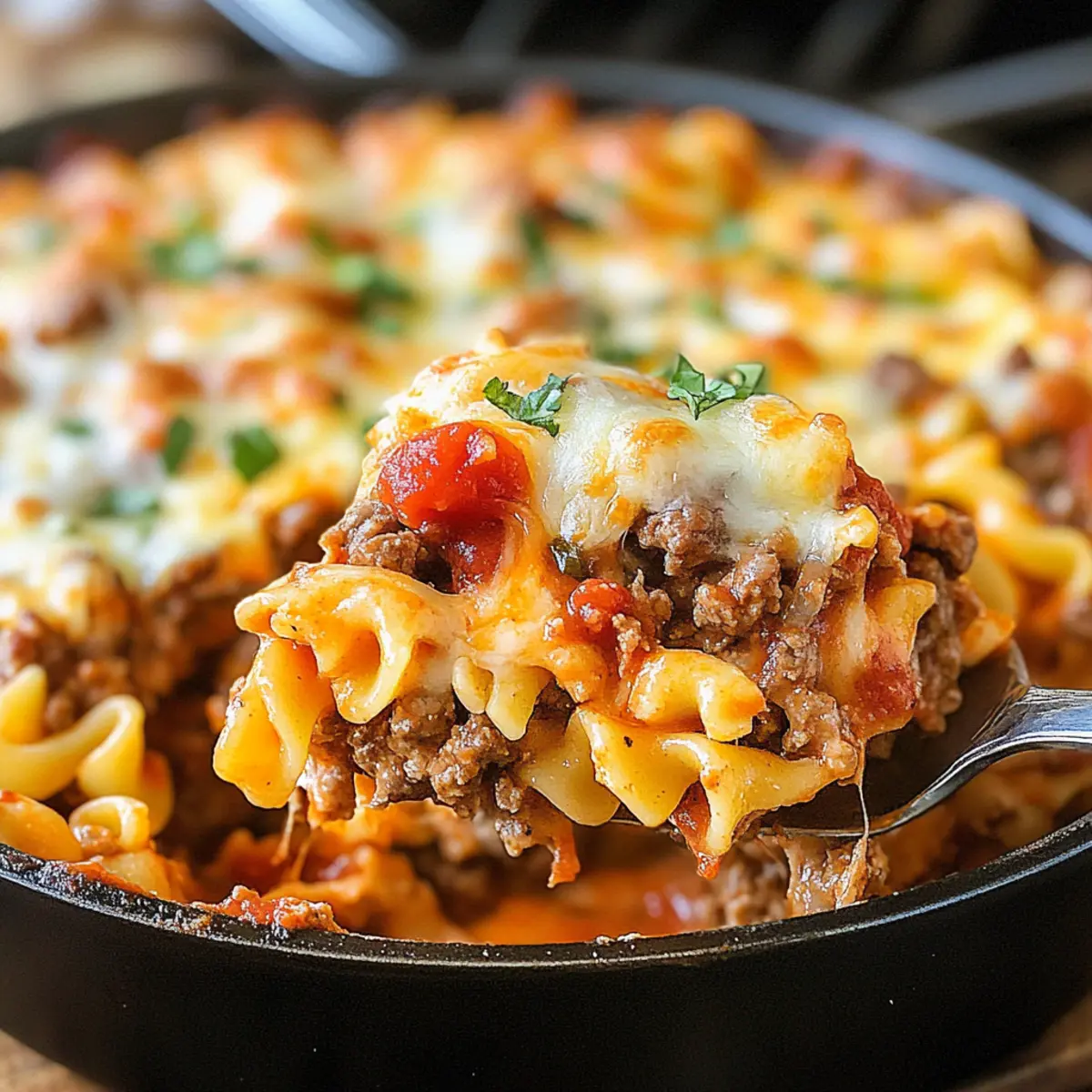 Comforting Warmth: This hearty casserole is like a warm hug on a plate, combining tender egg noodles with a zesty beef and tomato sauce that is simply irresistible.