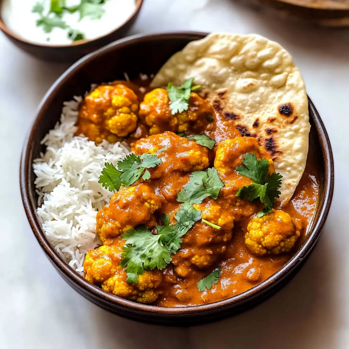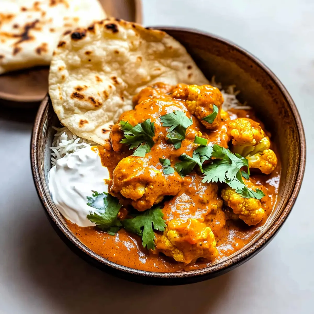 Garlic Naan: This warm, soft bread is ideal for scooping up the Butter Cauliflower, adding a comforting texture and delicious flavor to each bite.
