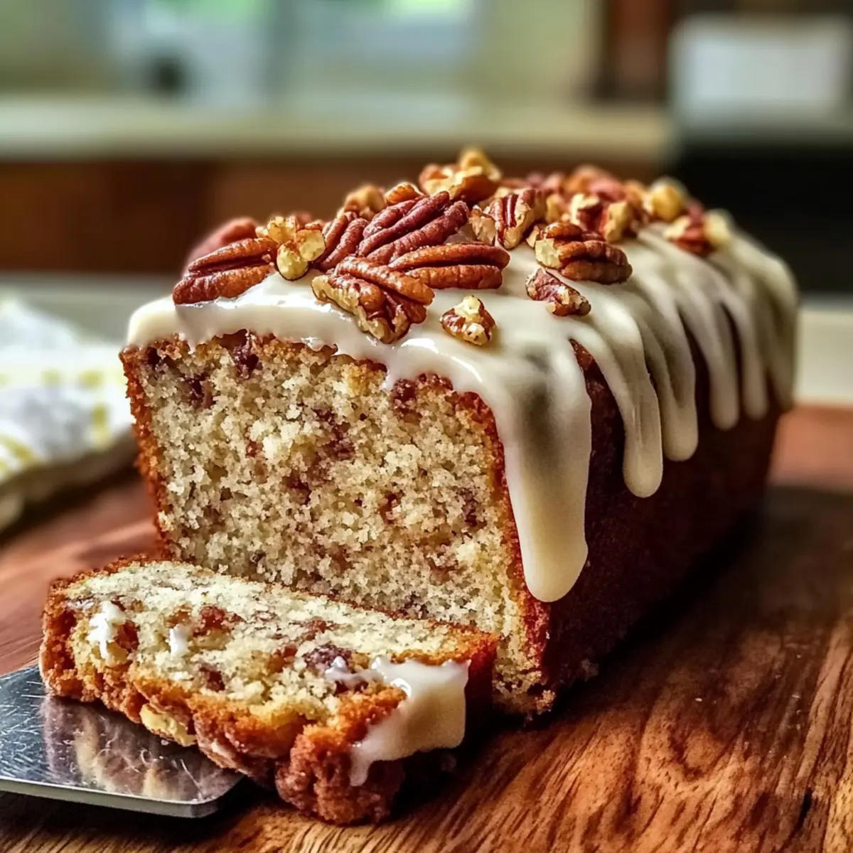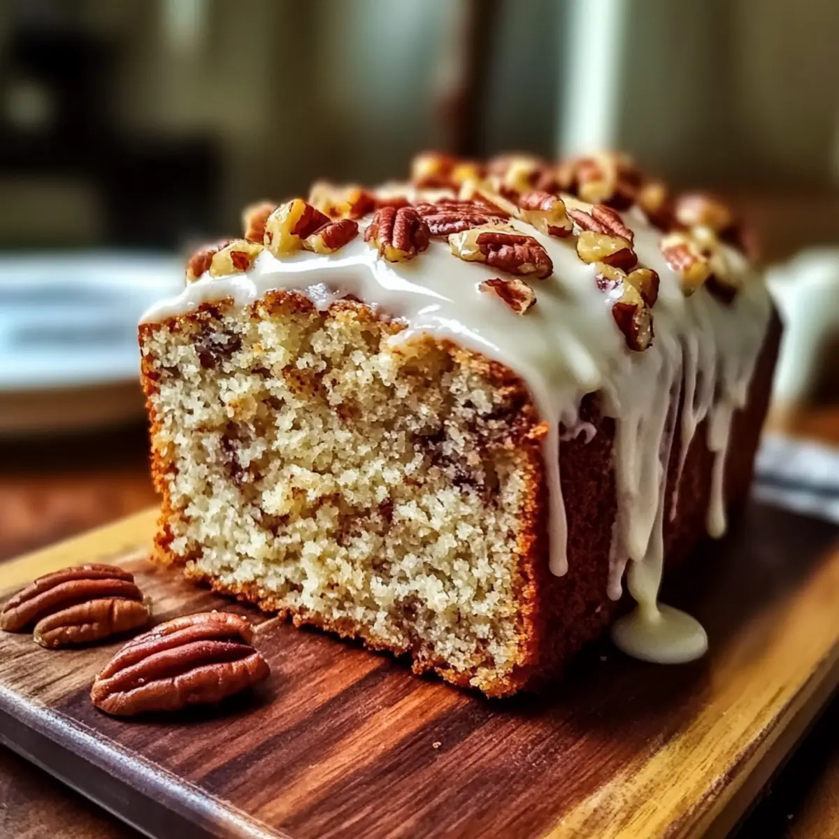 Impressive Presentation: Topped with a creamy frosting and crunchy pecan chips, this cake loaf looks as good as it tastes, ideal for sharing.