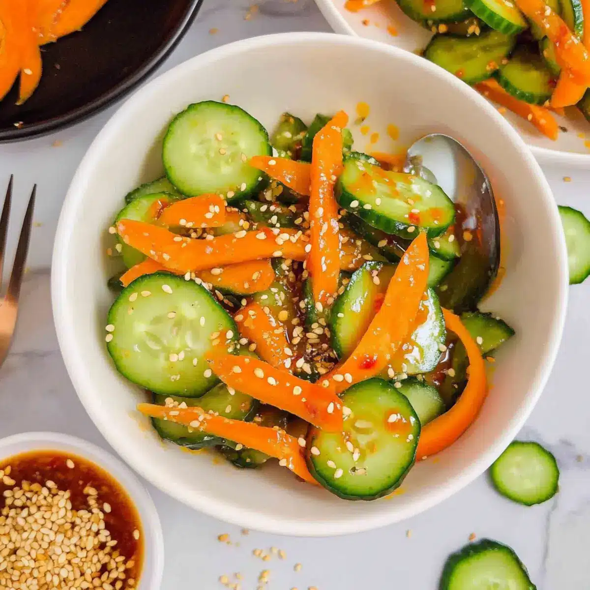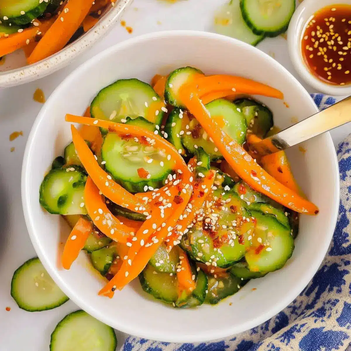 Absolutely! Use medium-sized carrots for optimal sweetness and crunch; they’re easier to slice thinly. For the cucumbers, a large English cucumber works beautifully, but if you prefer smaller ones, 3-4 Persian cucumbers are a fantastic substitution. Just ensure they look firm and fresh, avoiding any that have dark spots.