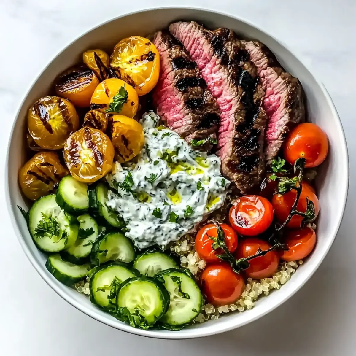 Delicious Mediterranean Steak Bowl Ready in 30 Minutes