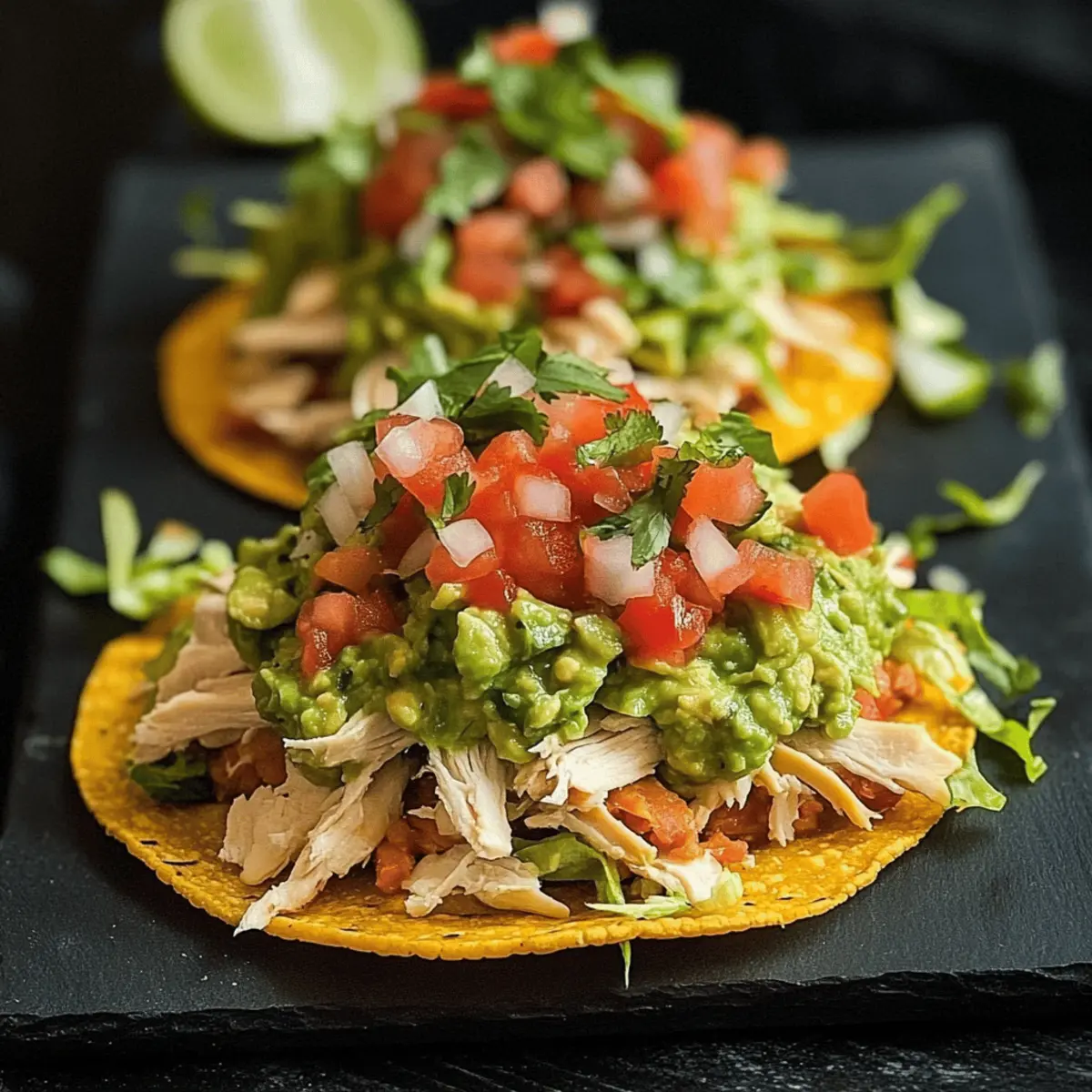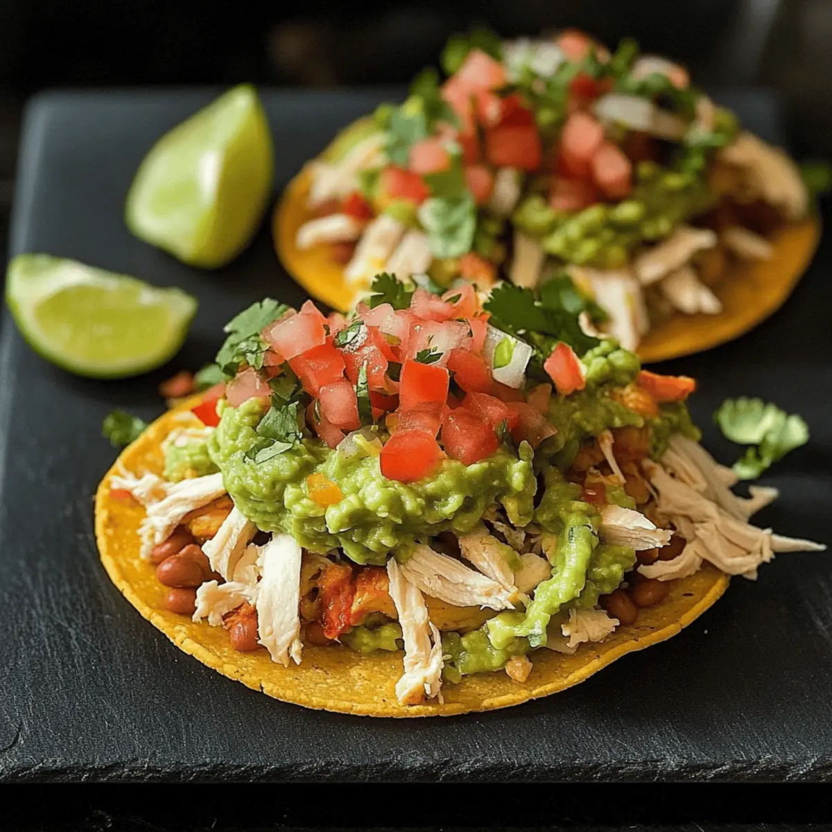 Flavor Explosion: Each bite of these tostadas bursts with flavor from the zesty chicken, creamy guacamole, and savory beans, giving your taste buds a delightful experience.