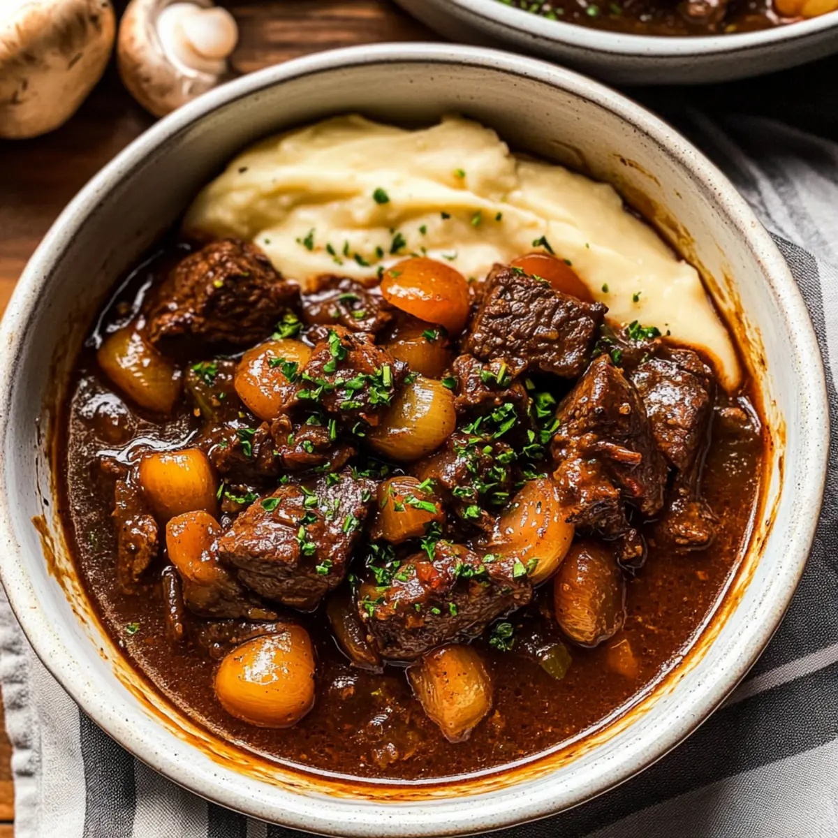 As I stirred the pot, a wave of warmth enveloped me, the rich scent of Classic Beef Bourguignon wafting through my kitchen. This traditional French dish is like a cozy hug on a chilly evening, where tender beef cubes simmer gently in a luscious, red wine sauce. Not only does it shine at holiday gatherings, but it also brings comfort to any family dinner, making it a perfect crowd-pleaser. Even better, the recipe is surprisingly simple with mostly hands-off cooking, allowing you to enjoy the romantic aroma as it fills your home. So, are you ready to turn your kitchen into a comforting French bistro? Let’s dive into this heartwarming adventure together!