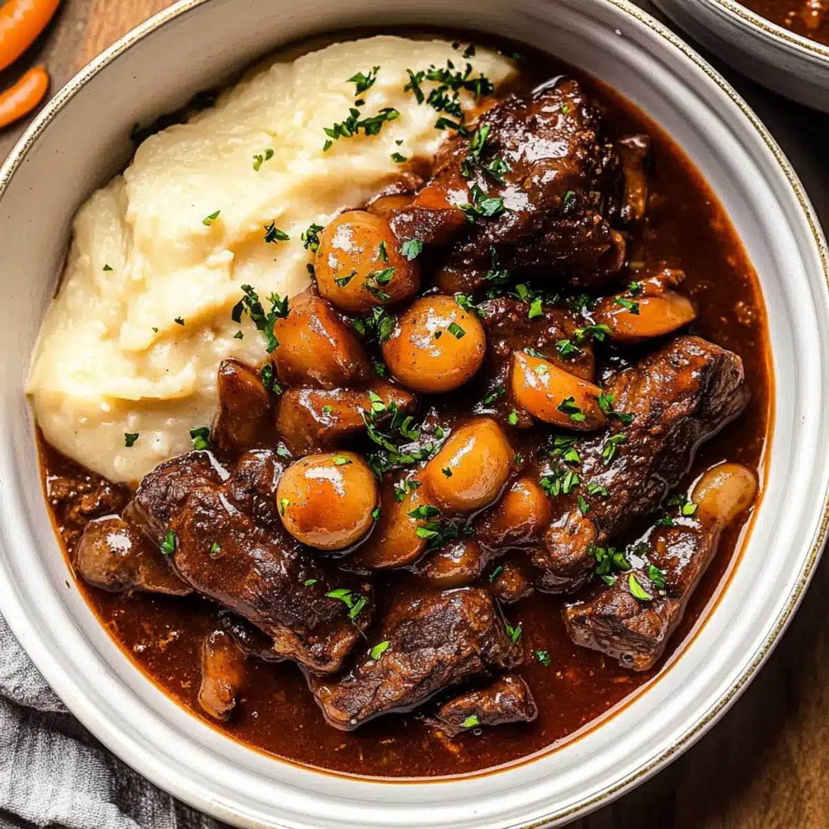 Buttery Mashed Potatoes: Creamy and smooth, these potatoes soak up the luscious sauce wonderfully. They bring a comforting element that balances the rich flavors of the bourguignon.