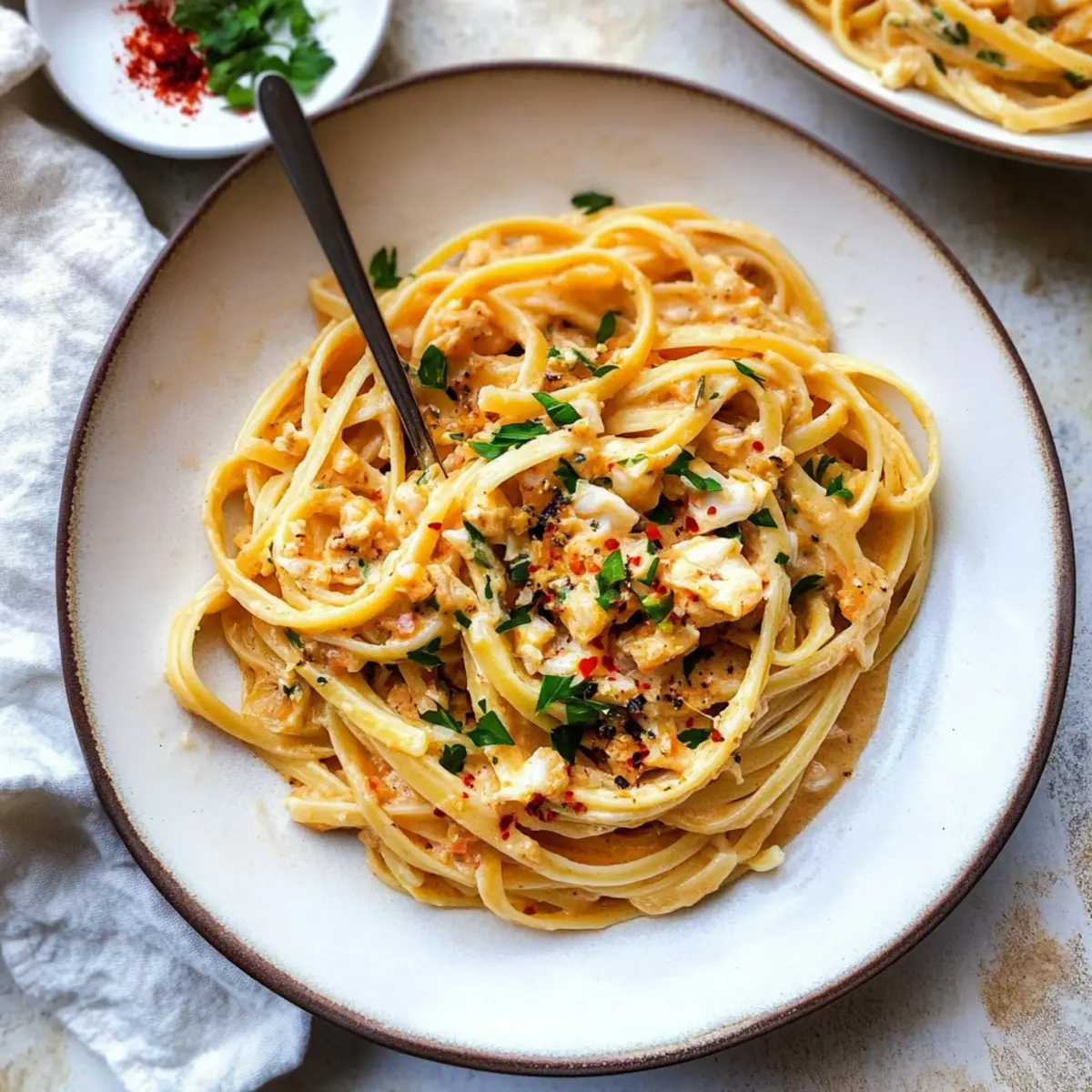Finish by tossing in 2 tablespoons of finely chopped flat-leaf parsley and a pinch of red pepper flakes, giving the dish a fresh burst of flavor and a hint of heat. Make sure everything is well combined and heated through before serving your elegant Crab Linguine.