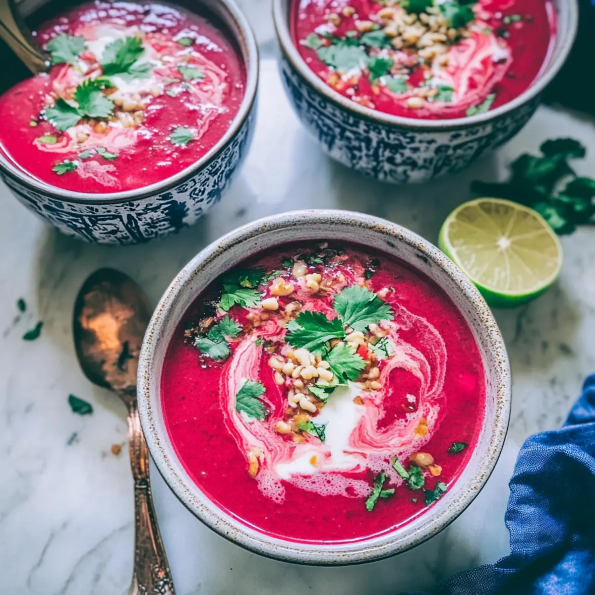 Vibrant Color: The magenta hue of this soup not only excites your taste buds but also makes for a stunning presentation at any dinner table.