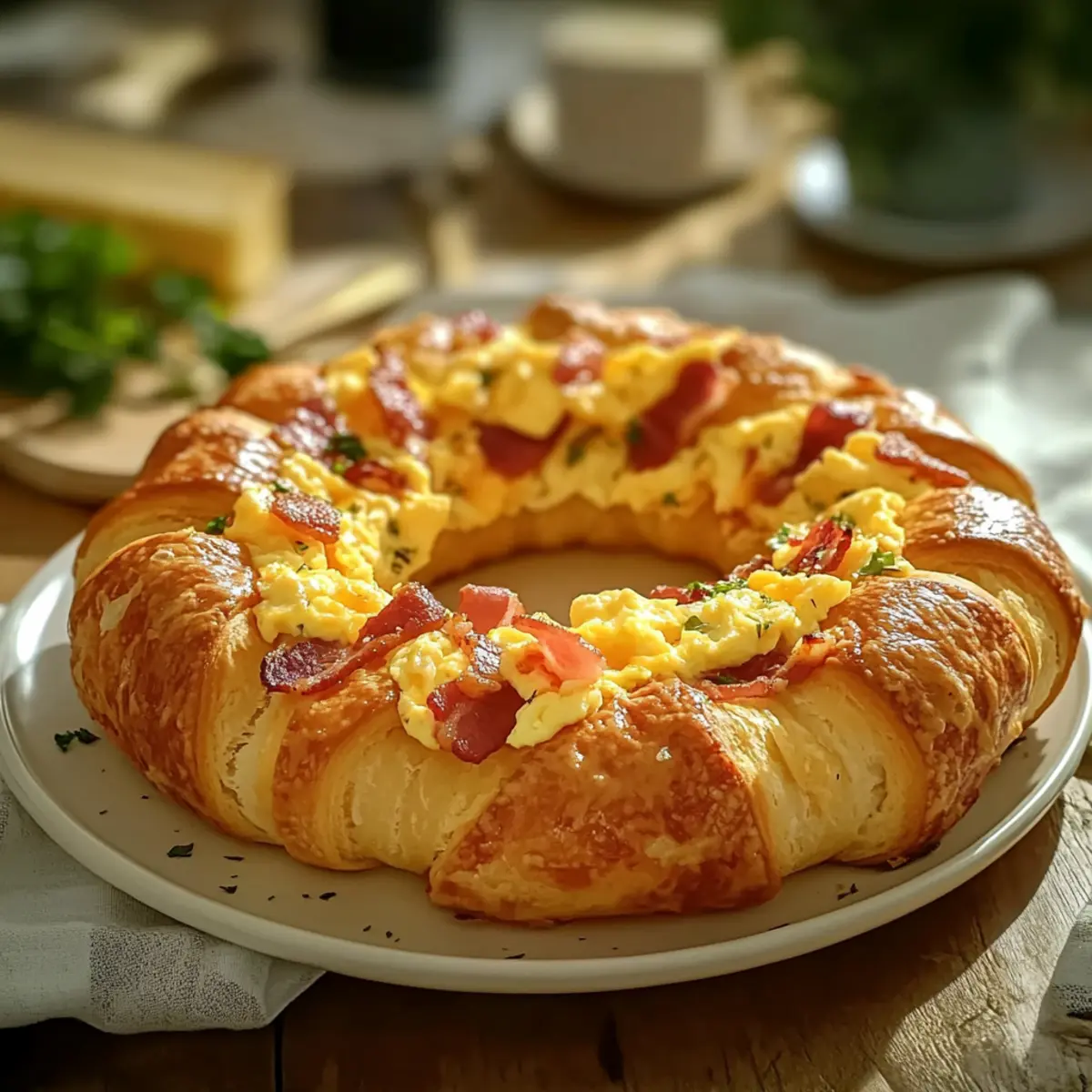 As I poured the aromatic coffee and watched the early morning sun dance through the kitchen window, a delicious idea struck me: a warm, inviting Crescent Breakfast Ring. With its golden, flaky dough hugging a savory blend of fluffy scrambled eggs, crispy bacon, and melted cheddar cheese, this dish transforms any breakfast into a celebration. This easy-to-make recipe isn’t just a feast for the eyes; it’s also a crowd-pleaser that can effortlessly fit into your busy weekday routine or luxurious weekend brunch plans. Plus, if you’re looking for a vegetarian twist, you can easily swap out the bacon for sautéed veggies! Are you ready to embrace a breakfast that brings smiles to the table? Let’s dive into this mouthwatering adventure!