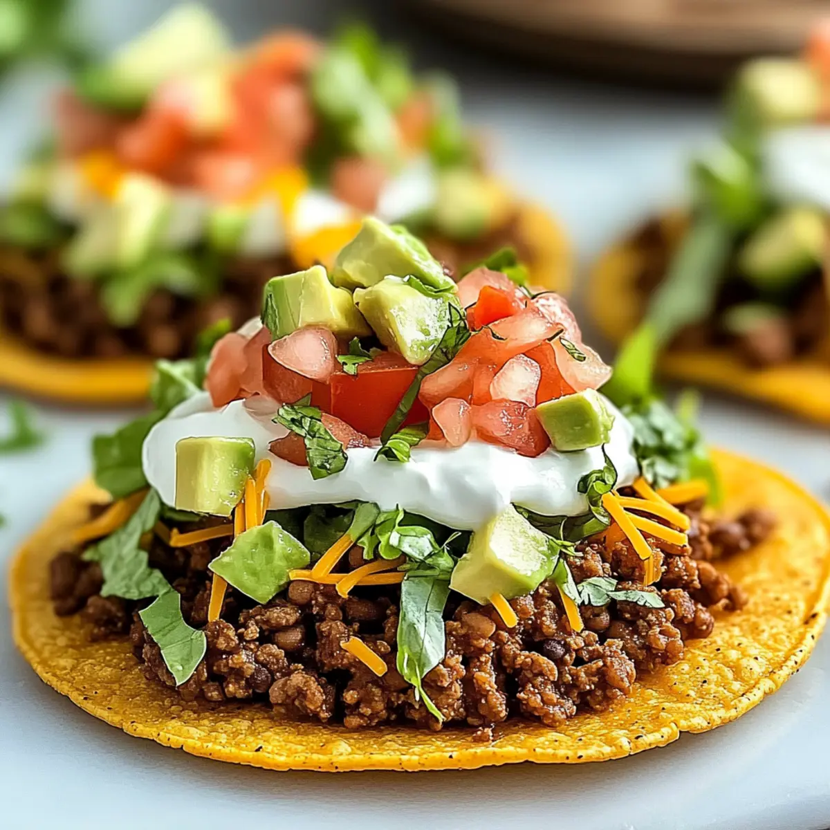 These Easy Ground Beef Tostadas are an excellent choice for busy weeknights, allowing you to prep components that save time and keep flavors fresh. You can prepare the seasoned ground beef and refried beans up to 3 days in advance—just store them in airtight containers in the refrigerator to maintain quality. Additionally, you can bake the tostada shells and store them at room temperature for up to 1 week—this keeps them crispy for serving! When you’re ready to enjoy, simply reheat the beef and beans on the stove or microwave, then assemble with fresh toppings like lettuce, tomato, and avocado before serving for a delightful meal that’s just as delicious as if made fresh!