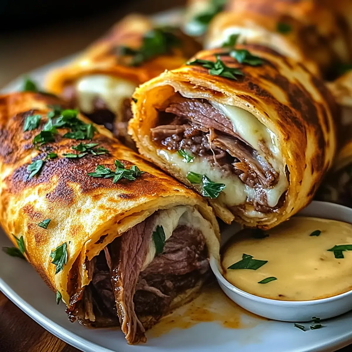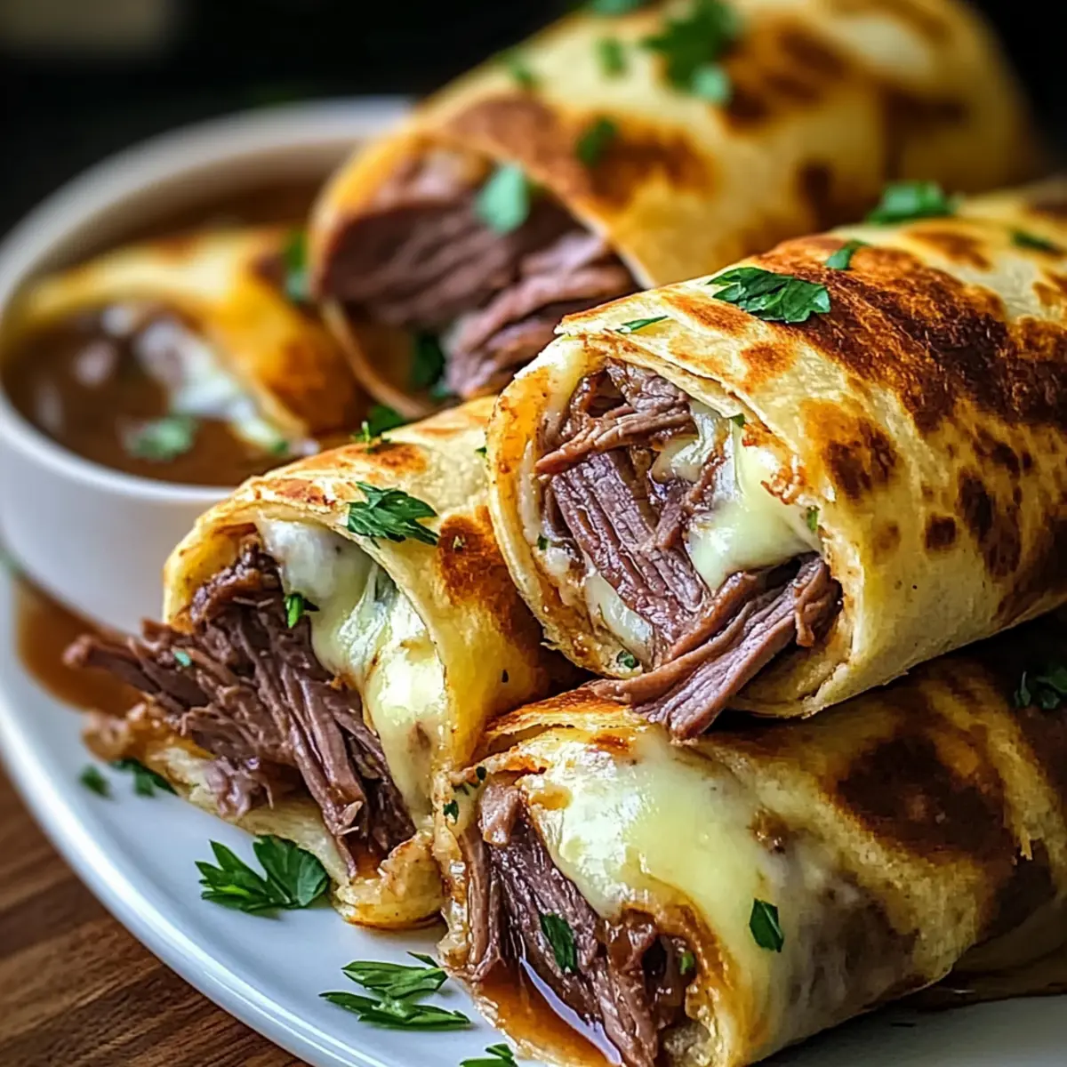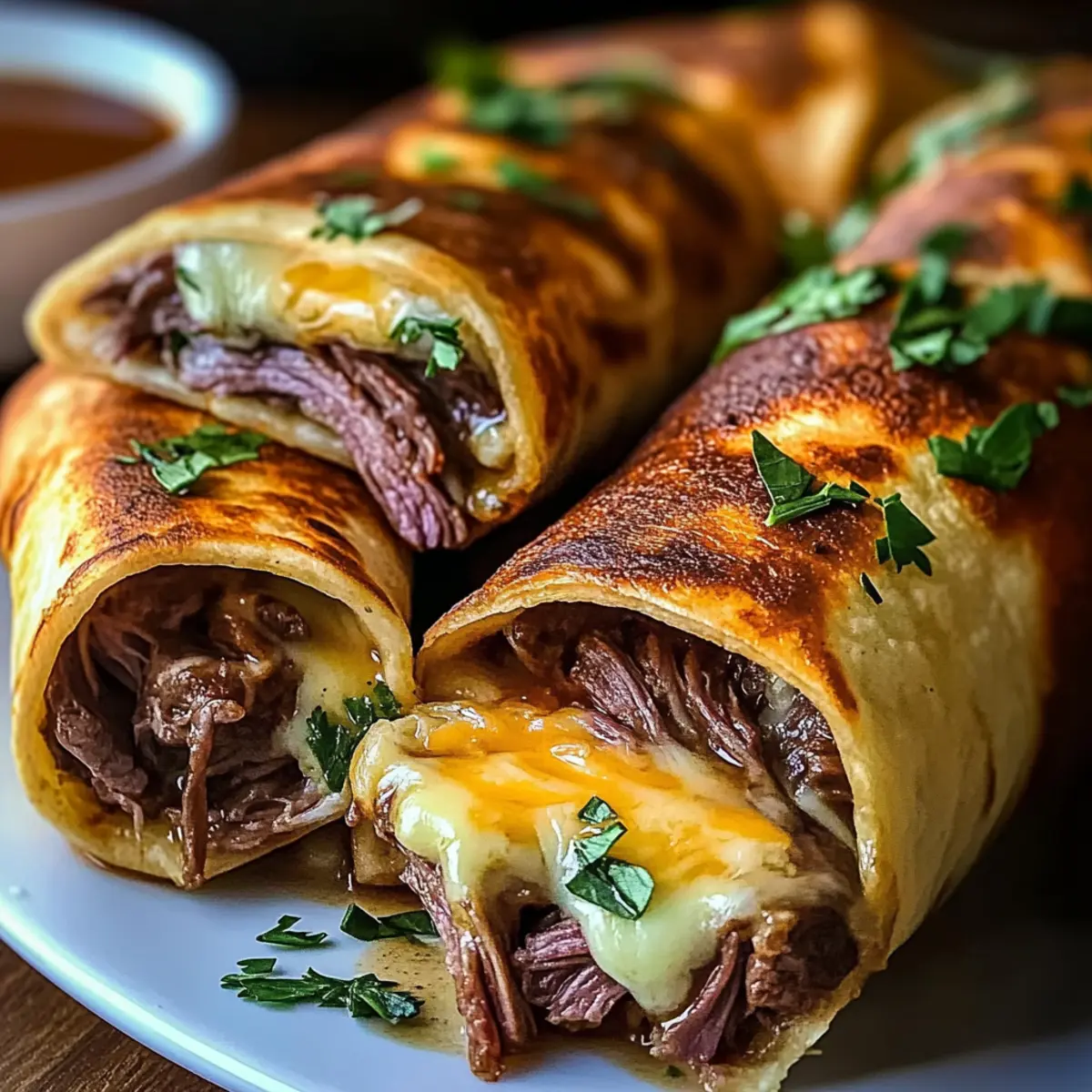 Experiment with Cheese: Try using different cheeses like sharp cheddar or pepper jack for a kick. This customization can elevate your French Dip Tortilla Roll Ups to a whole new level.