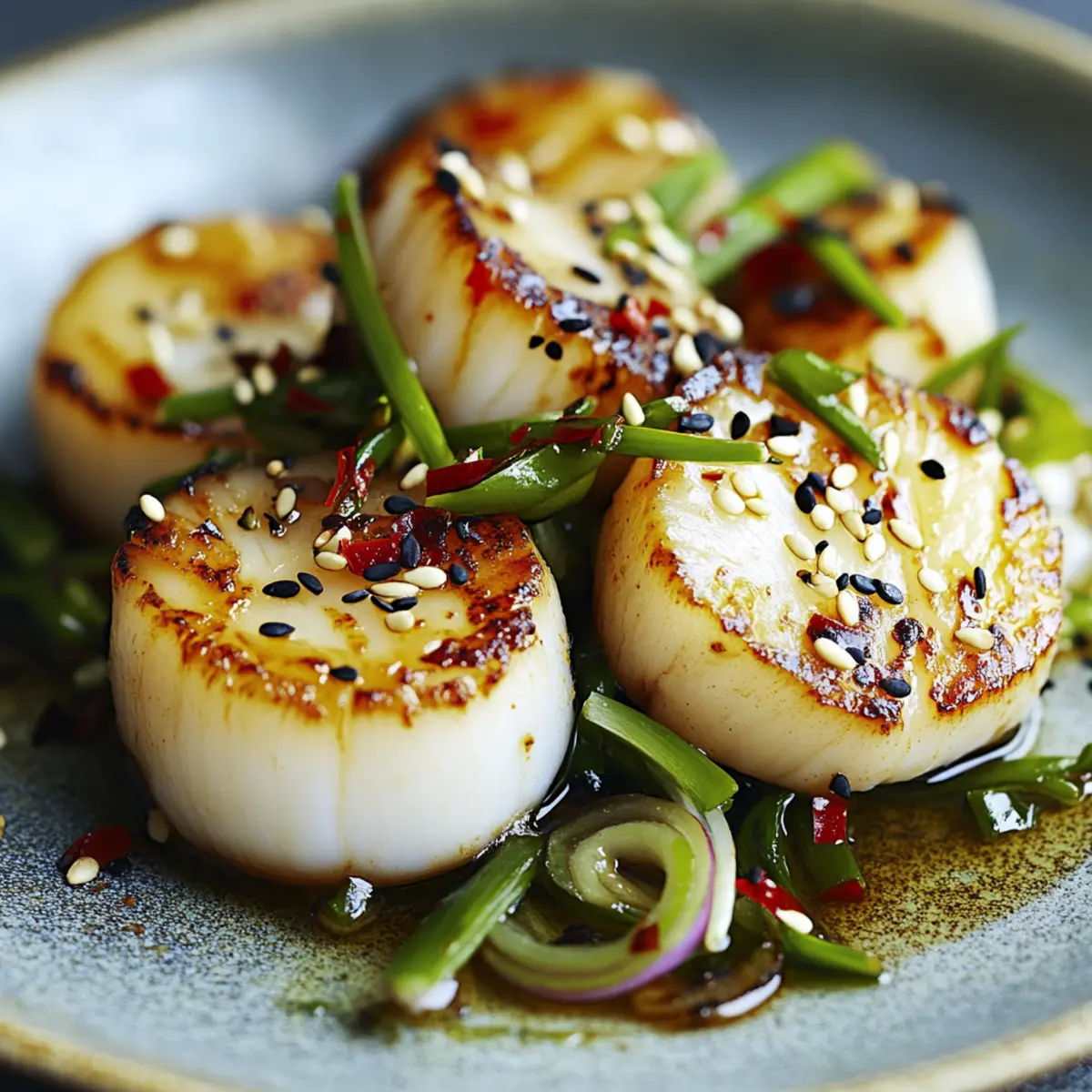 Preparing Fusion Chilli-Soy Scallops ahead of time can be a game changer for busy weeknights! You can marinate the scallops up to 24 hours in advance; just whisk together the soy sauce, sesame oil, chilli flakes, and grated ginger and store it in an airtight container in the refrigerator. Keep the scallops covered in the marinade as well, but avoid soaking them too long to prevent them from becoming mushy. Sauté the spring onions and red chilli up to 3 days ahead and refrigerate them in a sealed container. When you’re ready to serve, simply sear the scallops for about 2 minutes per side until golden, and finish with the sautéed vegetables for a dish that’s just as delicious and stress-free!