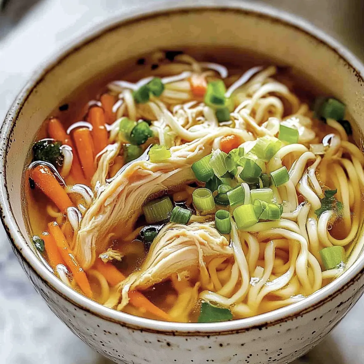 These Ginger Scallion Chicken Noodle Soup components can be prepped in advance for busy weeknights! You can cook the broth and shred the chicken up to 24 hours ahead, then store them in the refrigerator. The noodles can be cooked separately and added just before serving to ensure they remain perfectly tender. To maintain quality, refrigerate the soup base and noodles in airtight containers. When you’re ready to enjoy your hearty meal, simply rewarm the broth, add the noodles for 1-2 minutes, and finish with a sprinkle of scallion greens. This meal prep strategy not only saves you time but delivers a comforting bowl of soup that’s just as delicious as when freshly made!