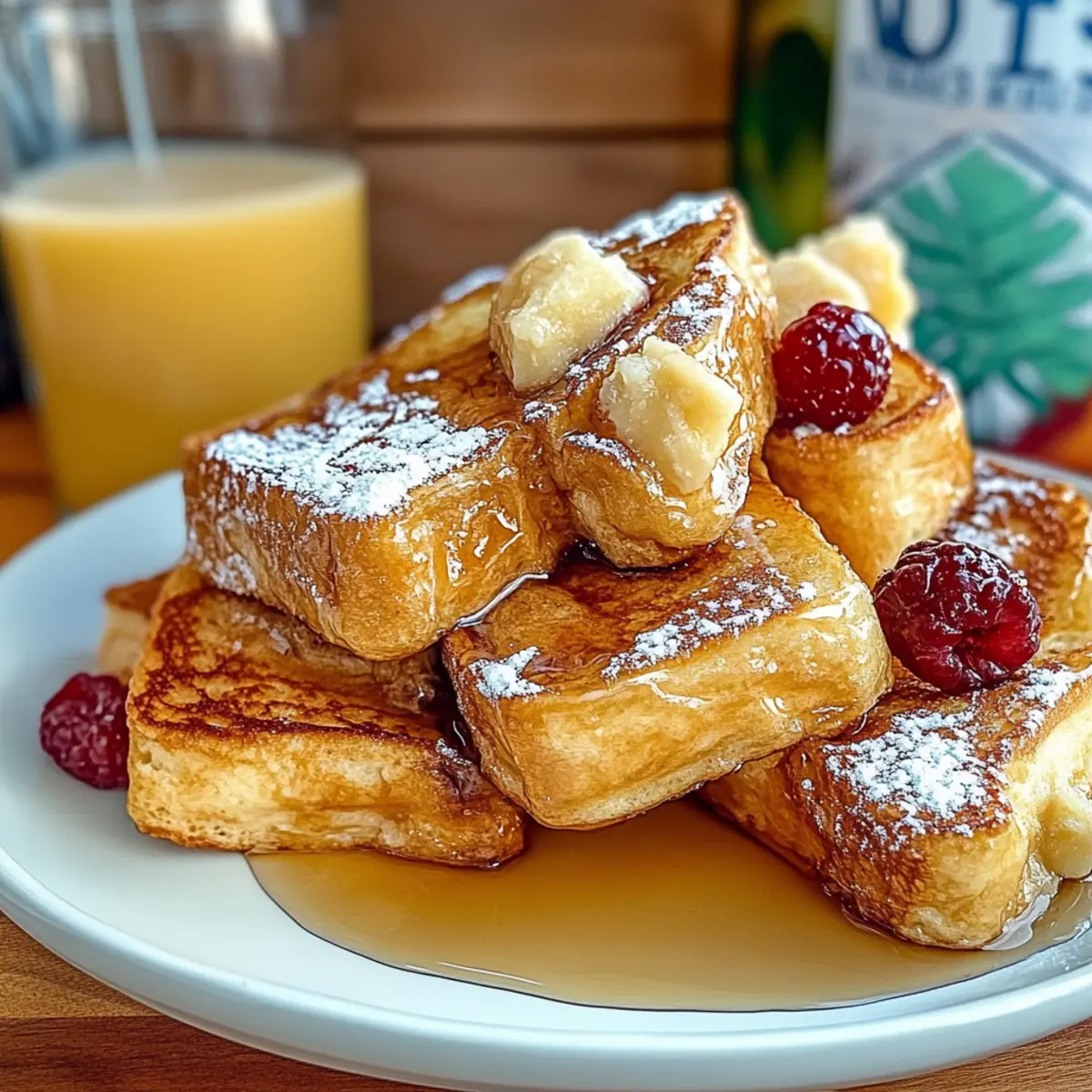 Orange Juice: A glass of freshly squeezed orange juice offers a bright, zesty counterpoint to the rich flavors of the French toast, refreshing your palate.