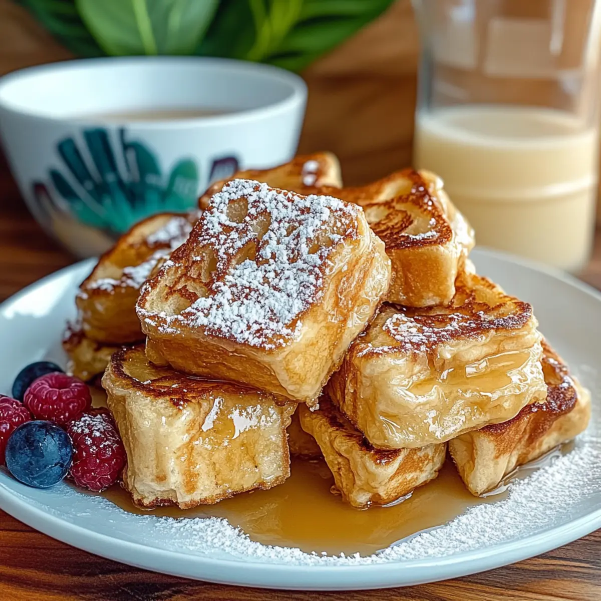 Fresh Berries: A medley of colorful, seasonal berries introduces a burst of freshness that lightens the meal. Their tartness beautifully complements the sweetness of the French toast.