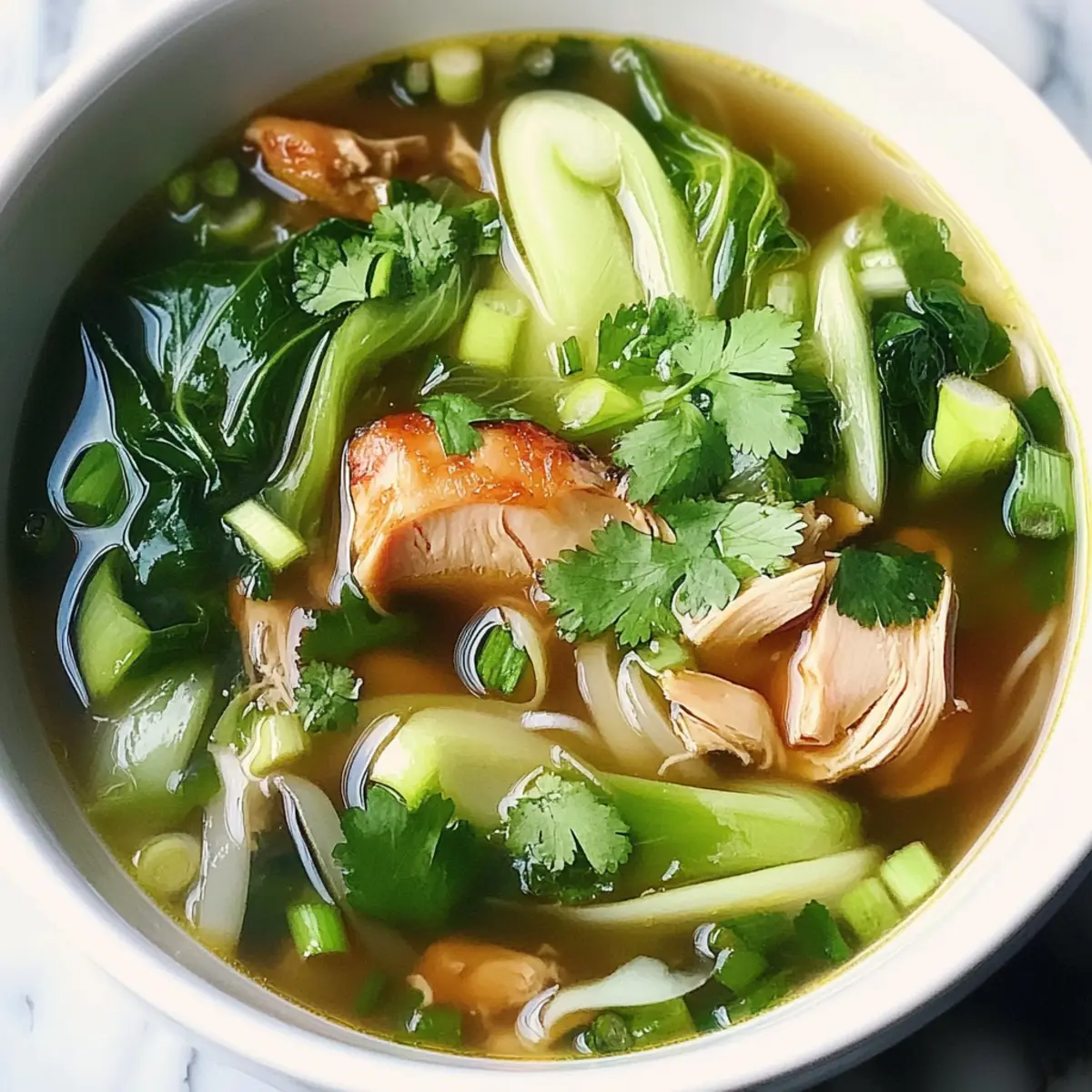 Stir in the bok choy greens and bean sprouts, cooking for another 2 minutes until the greens are wilted and vibrant. This last touch adds freshness and a lovely crunch to your Hearty Bokchoy Chicken Soup.