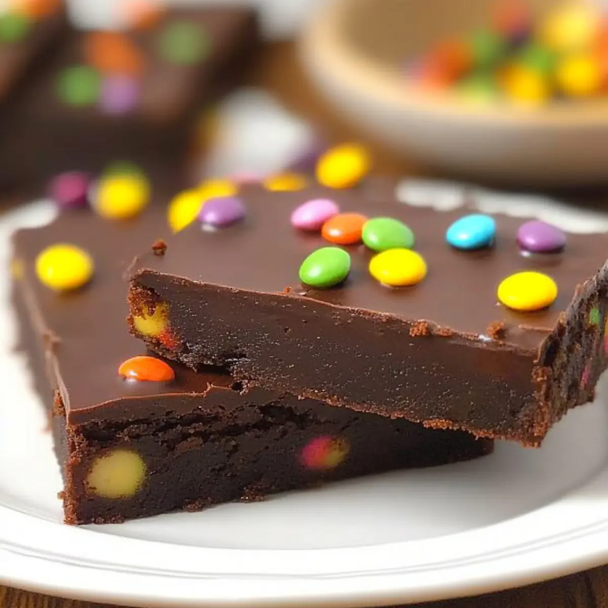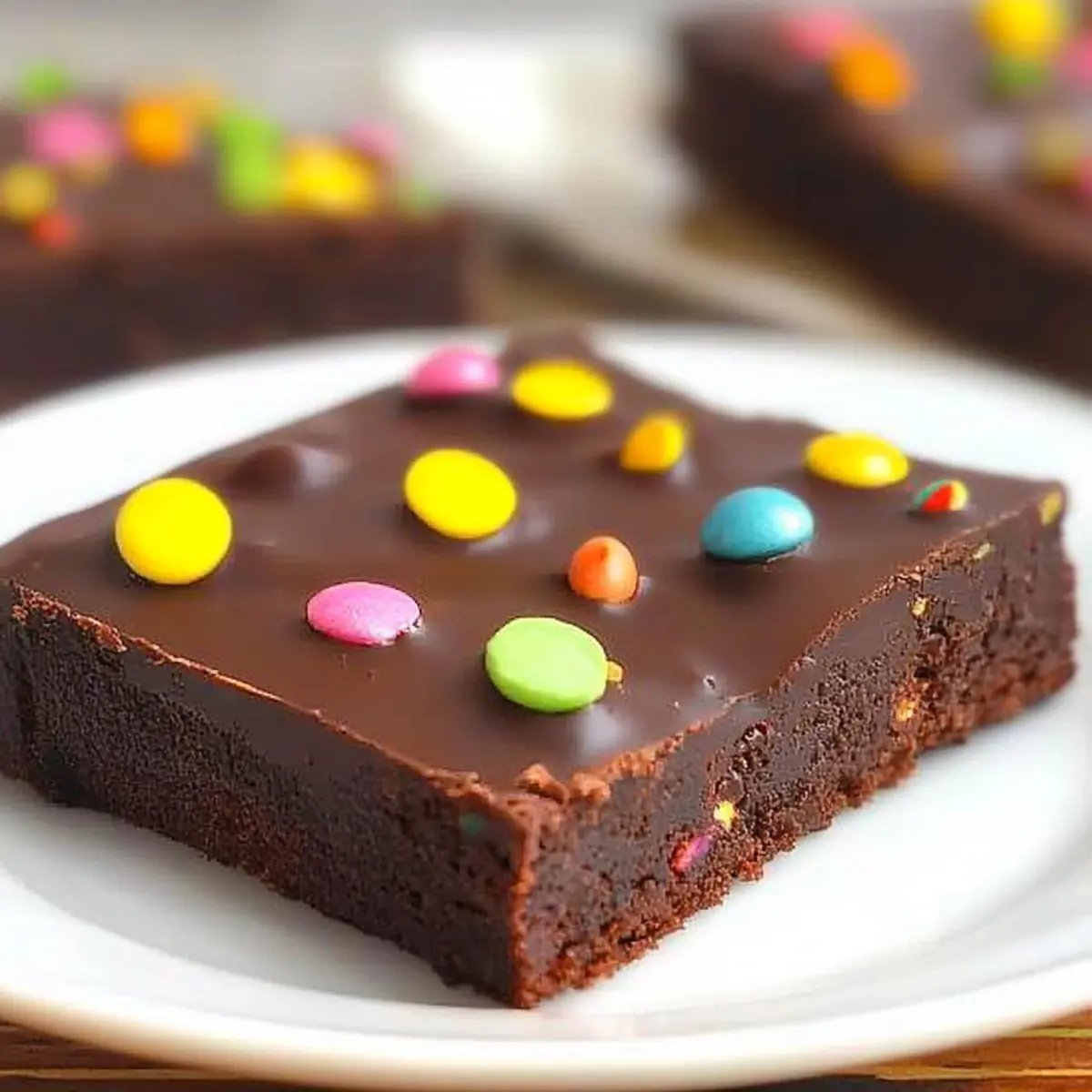 - Pour the ganache over the cooled brownies and sprinkle with rainbow chips.