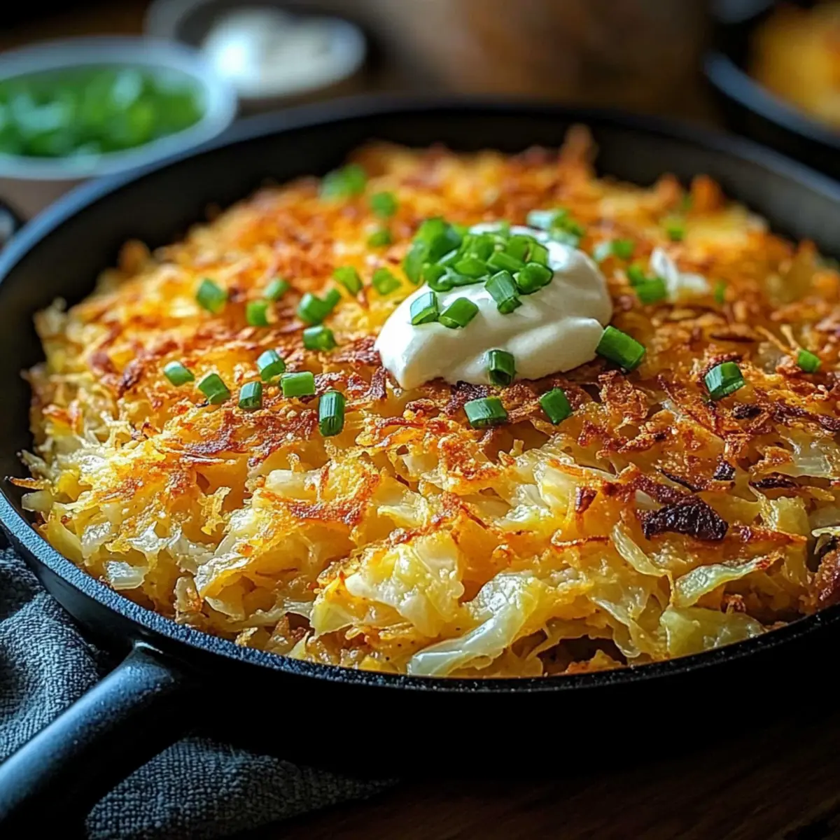 Comforting flavors come together beautifully in this Irish Cheddar & Cabbage Hash Brown Skillet, making it the perfect dish for any occasion. Easy preparation means you can have a hearty meal ready in no time—ideal for busy weeknights! Versatility shines through; feel free to switch up the cheeses or add sautéed onions for a personal touch. And let’s not forget—crowd-pleasing appeal means everyone at the table will enjoy it, from kids to adults. Pair this with some Sweet Potato Fries for a delightful twist! Enjoy preparing a dish that warms the heart and pleases the palate.