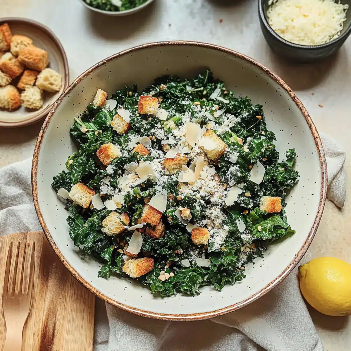 Customize with Ease: Feel free to swap out croutons with homemade alternatives, or use nutritional yeast instead of Parmesan for a dairy-free version of your Lemony Parmesan Kale Salad.