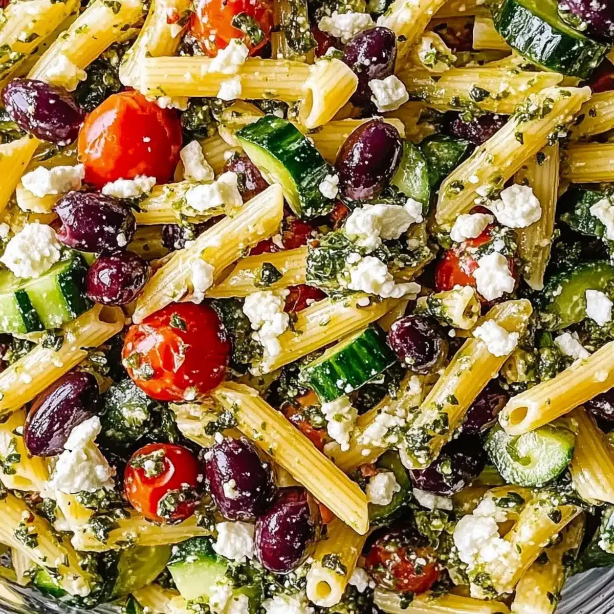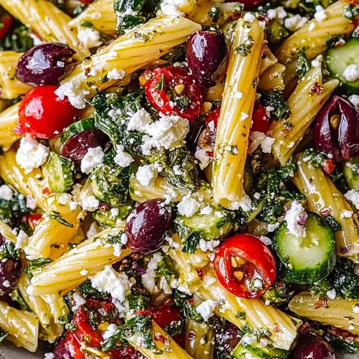 Vibrant, Colorful Dish: This Mediterranean Pasta Salad is not just food; it’s a feast for the eyes! The rainbow of vegetables combined with creamy feta makes every bite a delight.