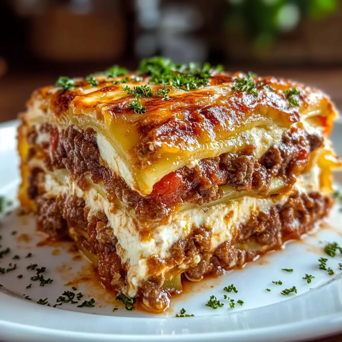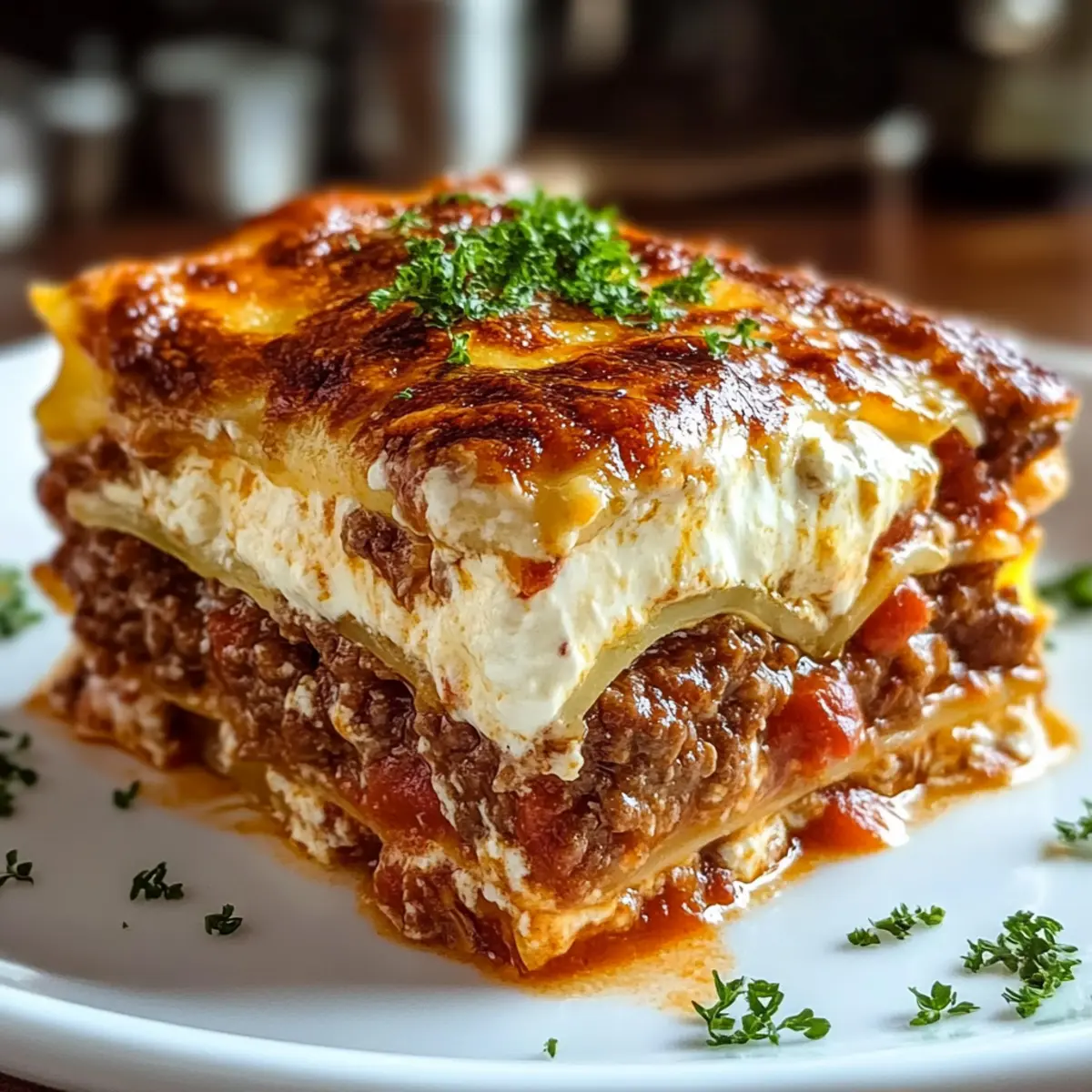 Layered Goodness: Each slice bursts with creamy ricotta, hearty meat sauce, and gooey mozzarella.