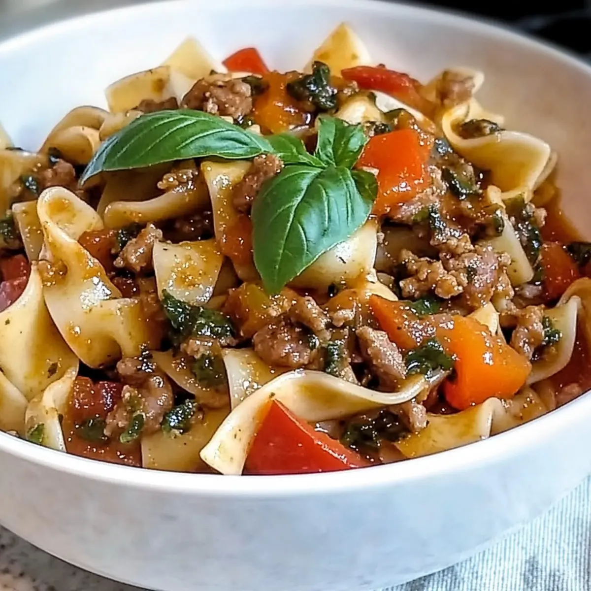 - Return the browned sausage back to the skillet, letting the sauce simmer gently for 8–10 minutes. As the sauce thickens, add the cooked noodles, tossing them in the skillet while incorporating reserved pasta water bit by bit until you reach your desired sauce consistency.