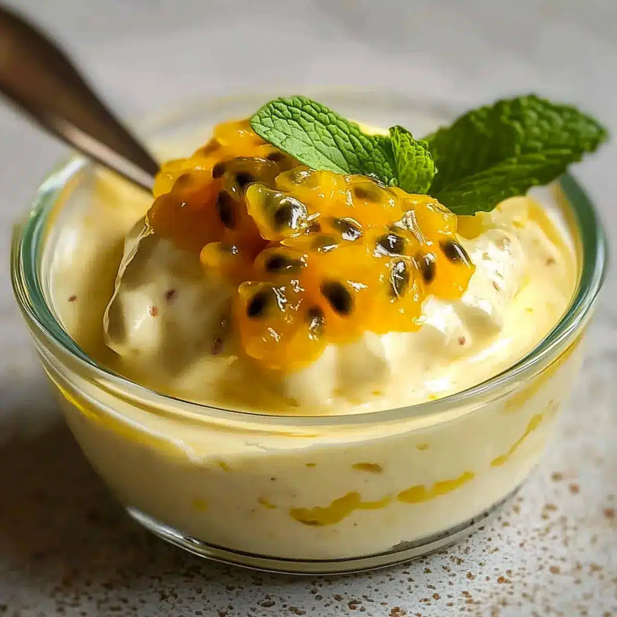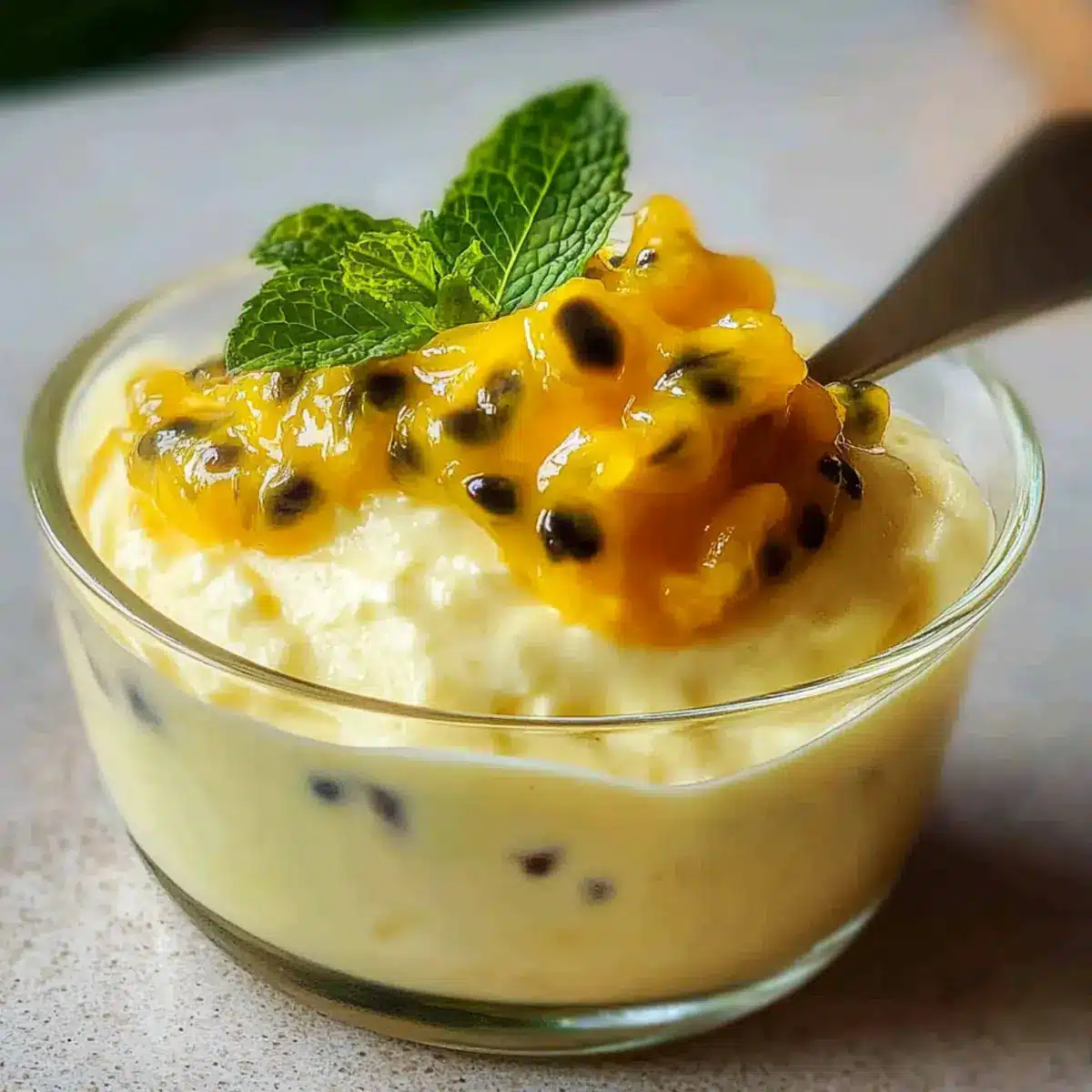 - Garnish with fresh passion fruit pulp and mint leaves before serving.