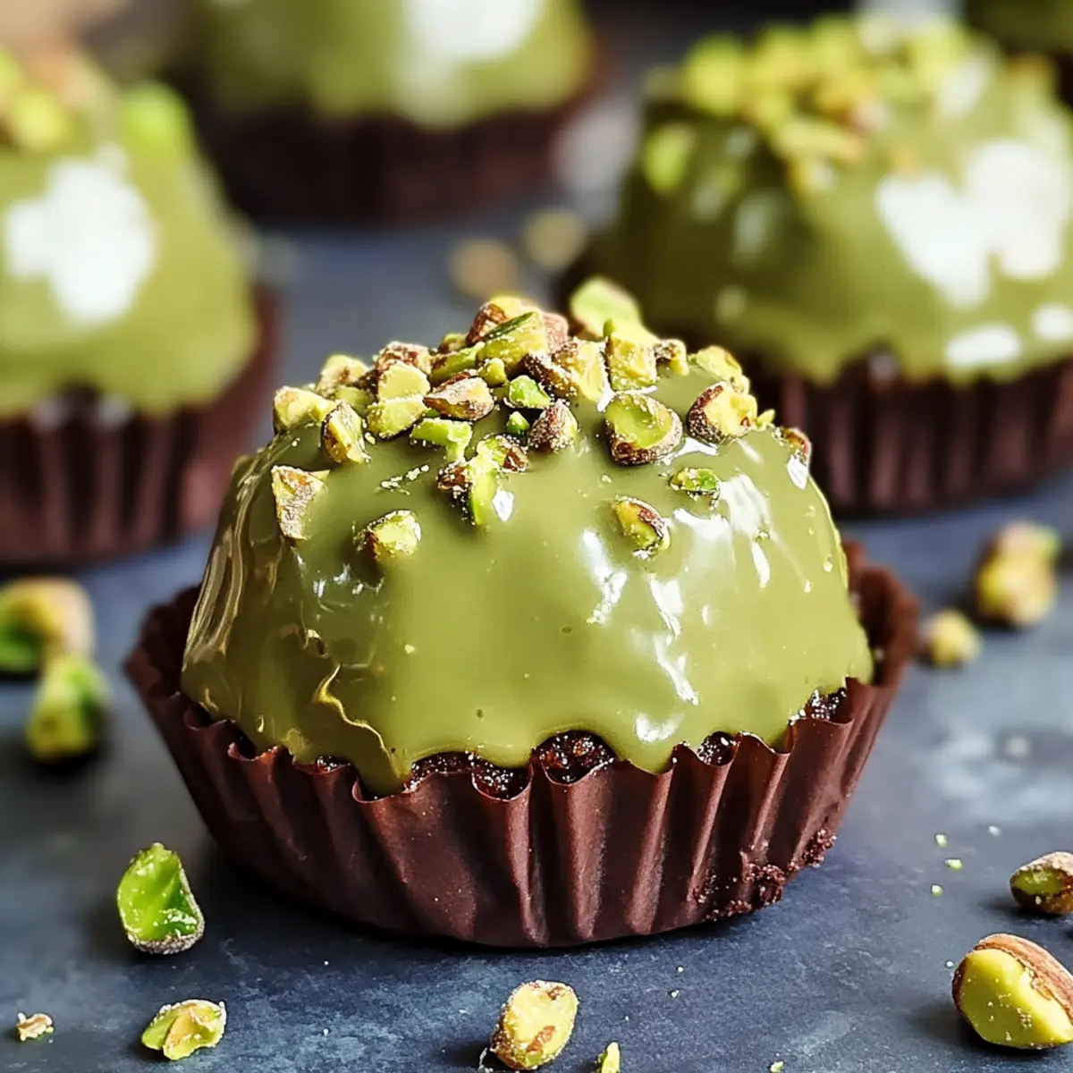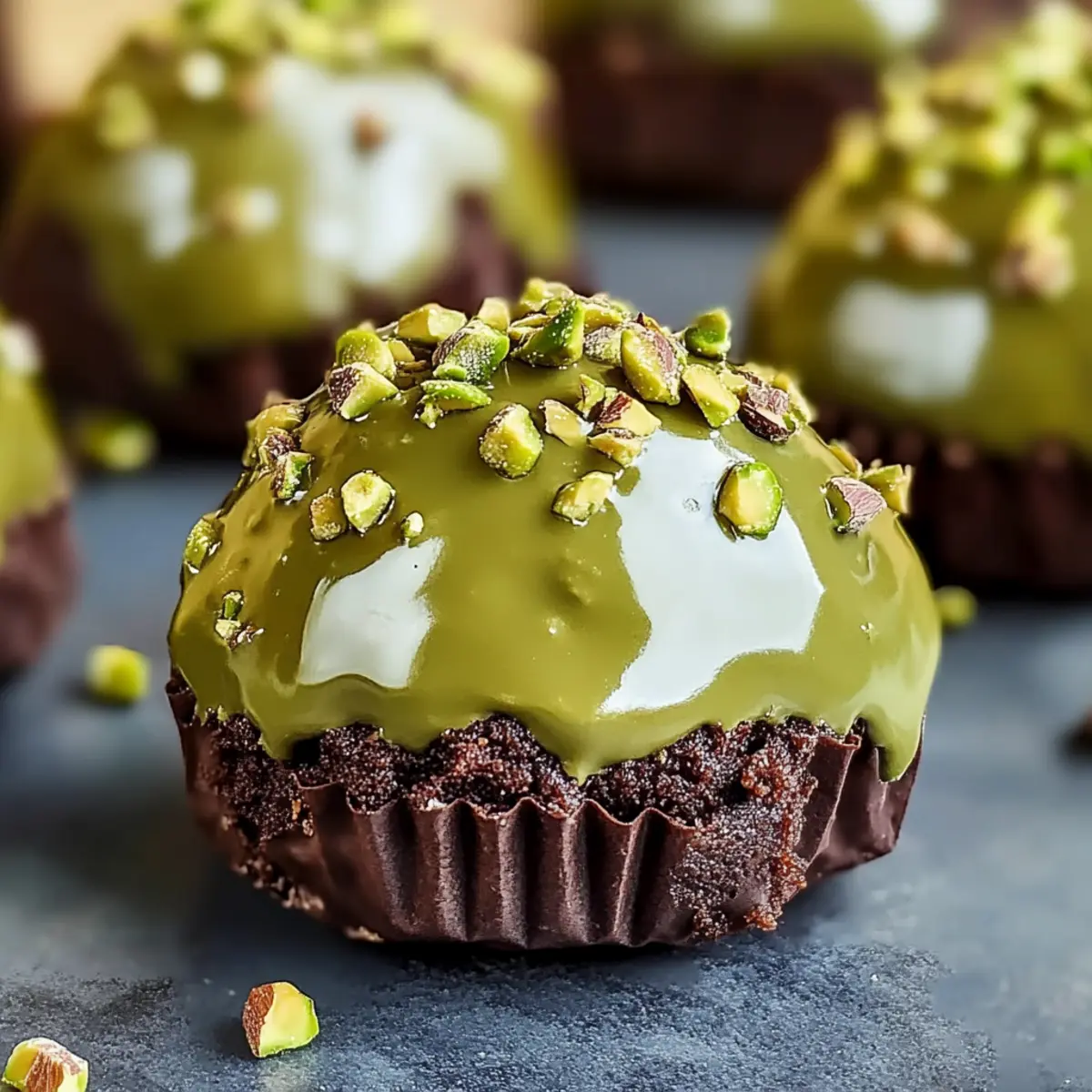 - Dip each brownie in pistachio cream, rolling in crushed pistachios for the final touch.