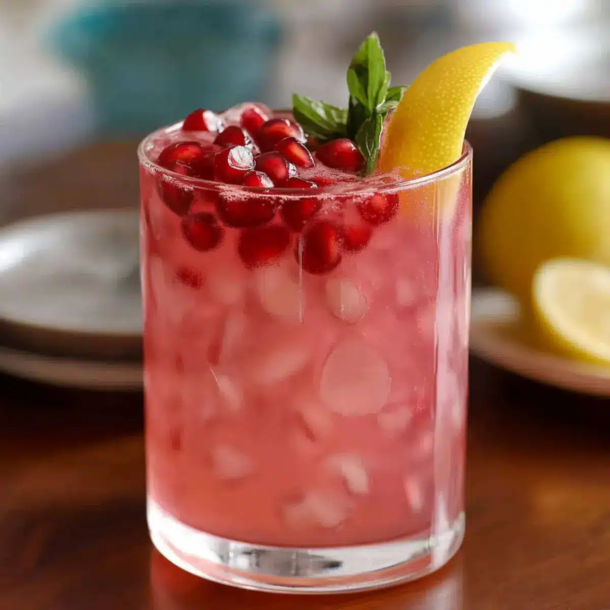 - Garnish each glass with lemon slices, pomegranate seeds, and mint before serving.