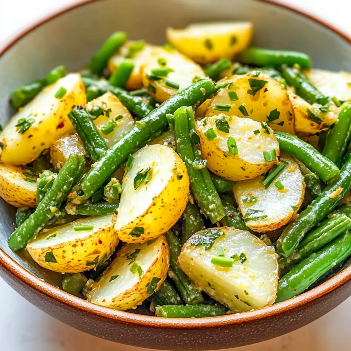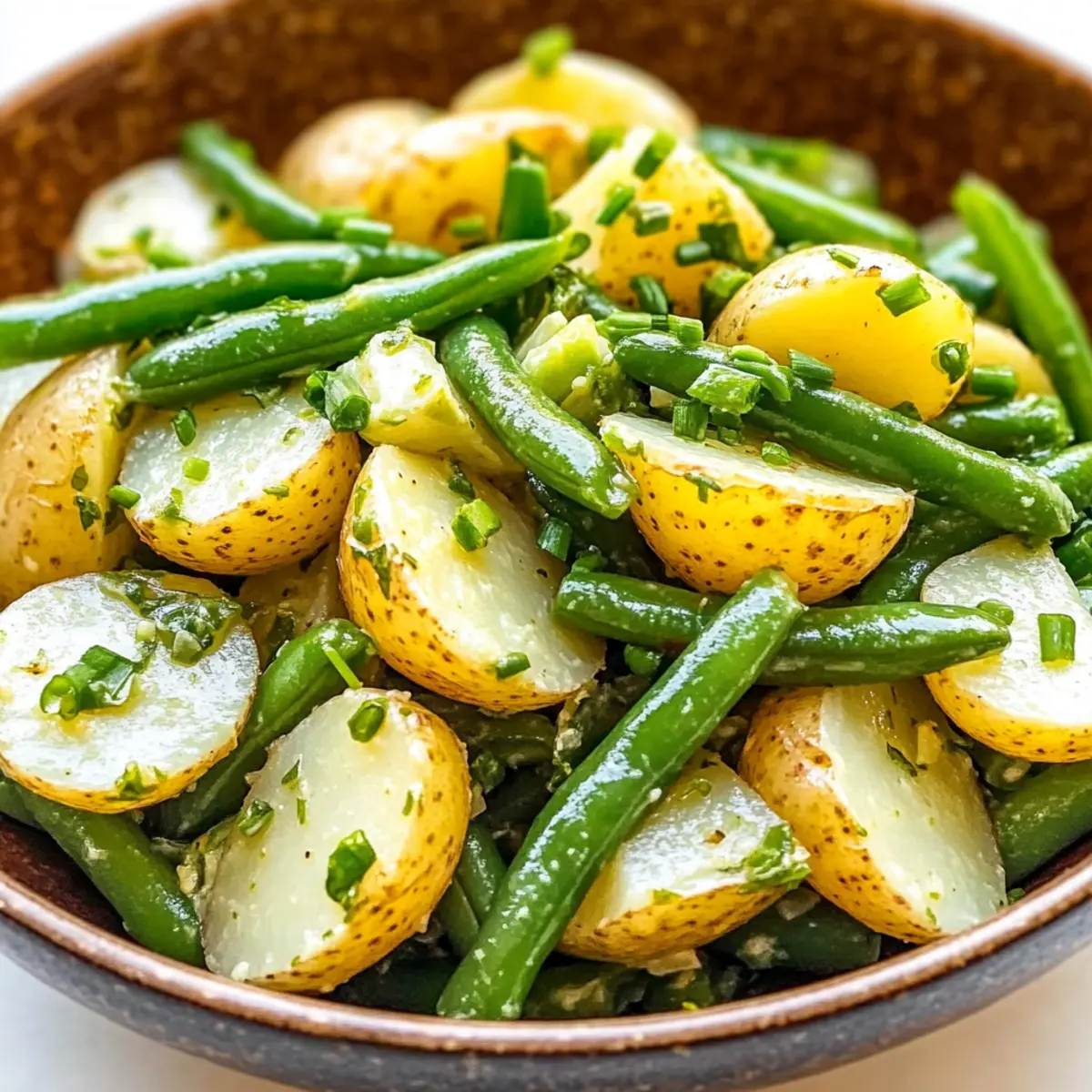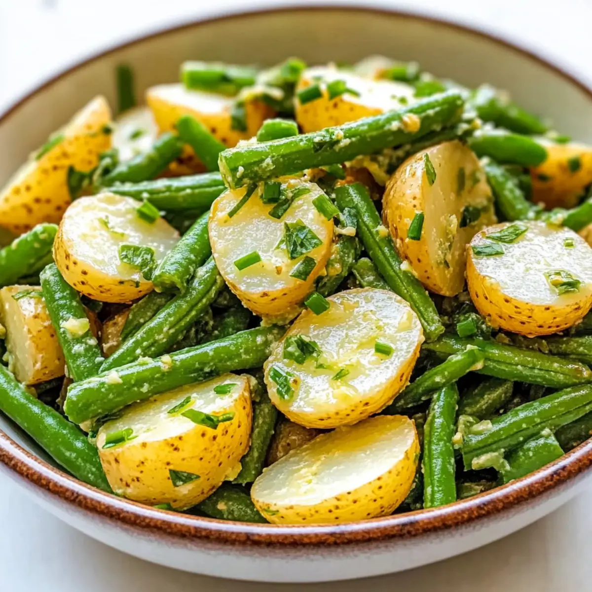 - Combine Ingredients: Slice the cooled potatoes and mix with blanched green beans in a large bowl. Drizzle vinaigrette over and toss gently.