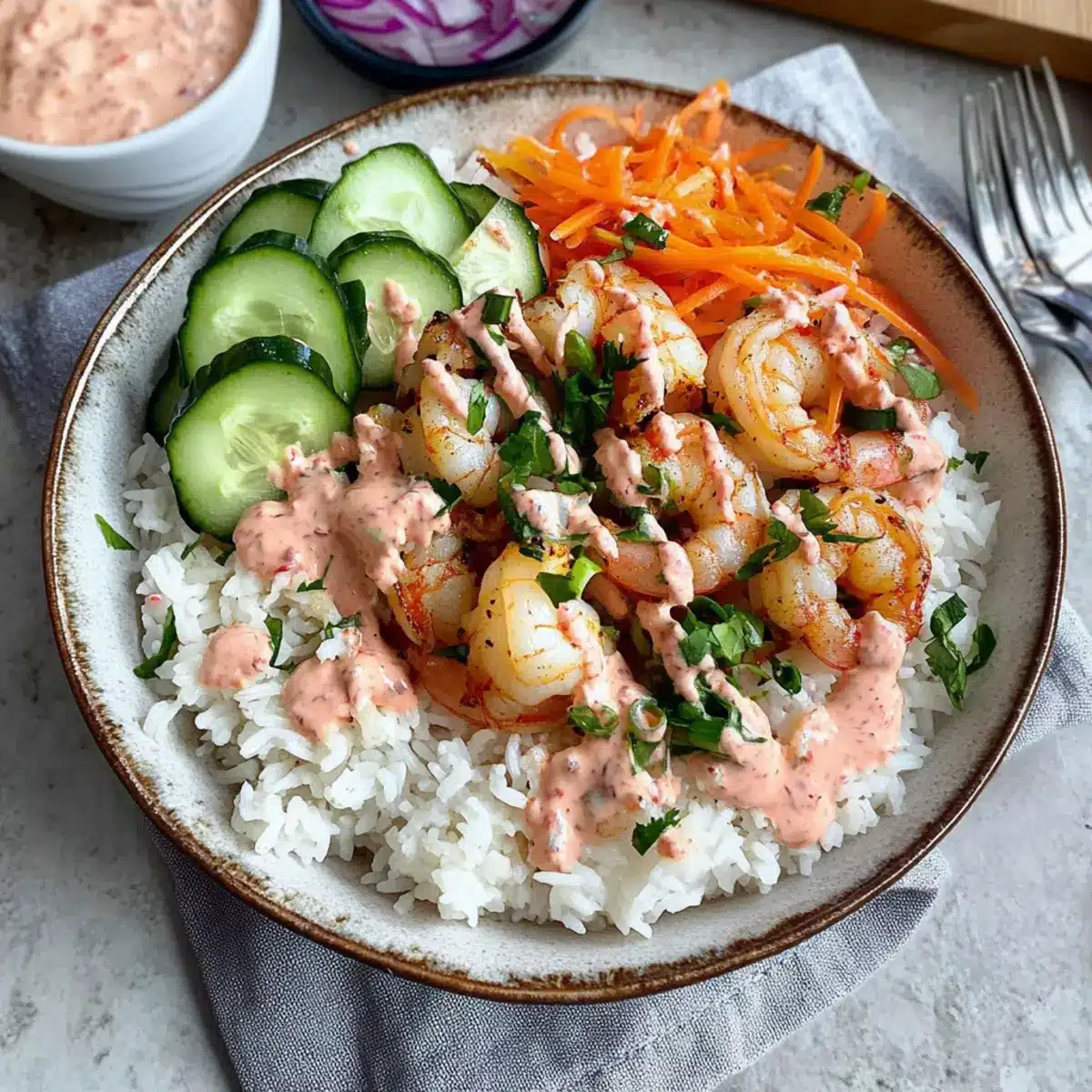 - Layering Matters: When assembling your bowls, layer ingredients thoughtfully; rice on the bottom, shrimp next, and veggies on top for an attractive presentation and better balance of flavors.