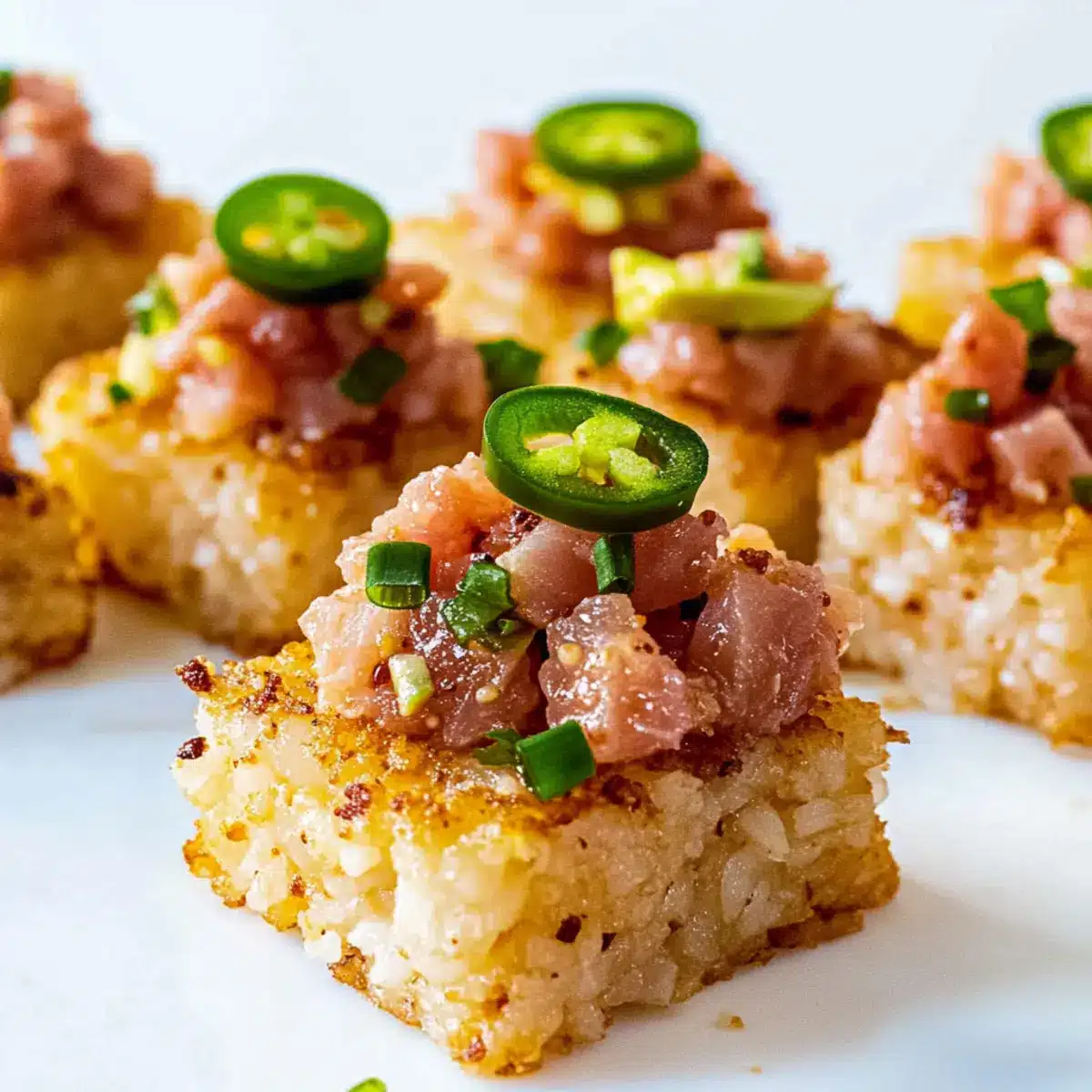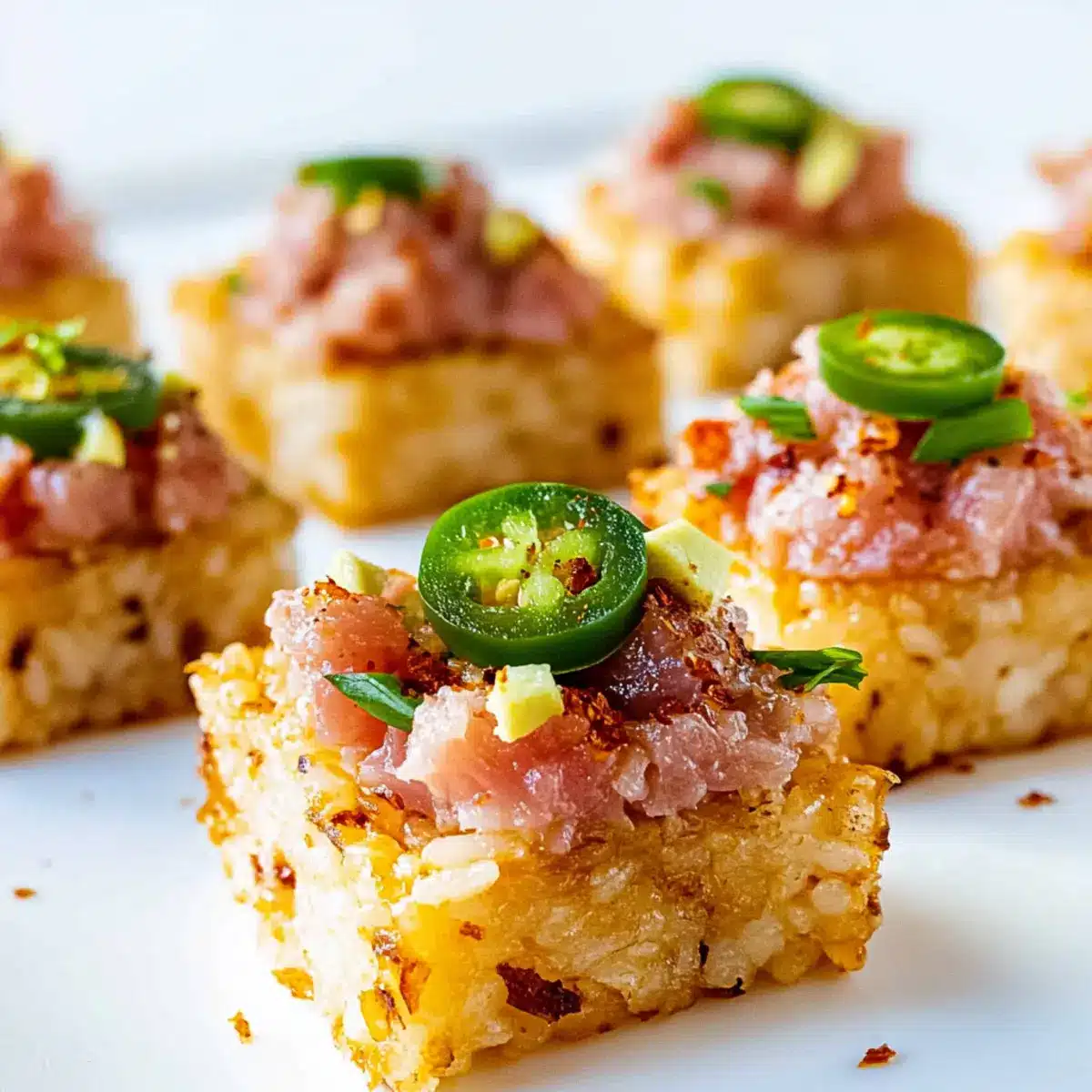 Absolutely! If you want to freeze the rice squares, first place them on a baking sheet to freeze individually for about 1 hour. Then, transfer them to a freezer-safe bag, where they can last up to 1 month. To reheat, pop them in an air fryer at 350°F for about 5-7 minutes until crispy again. Remember to add the fresh tuna mixture after reheating!