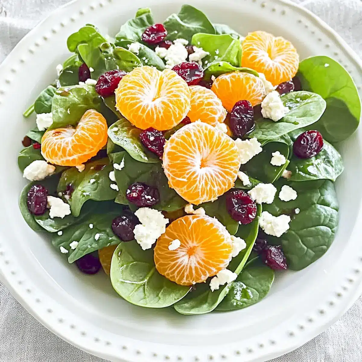 On a sun-drenched afternoon, I found myself craving something light, refreshing, and delightfully colorful—a culinary craving that led me to whip up a Spinach Salad with Mandarin Oranges. This vibrant summer salad satisfies those cravings while offering a healthy twist, perfect for warm days when you want to keep things cool in the kitchen. With a quick prep time, this salad pairs the natural sweetness of juicy mandarin oranges with the tartness of dried cranberries and the creamy richness of goat cheese, creating a symphony of flavors and textures. Whether you’re looking for a simple side or a satisfying lunch, you’ll love how easy it is to assemble and serve. Ready to elevate your summer meals with this delightful dish? Let’s dive in!