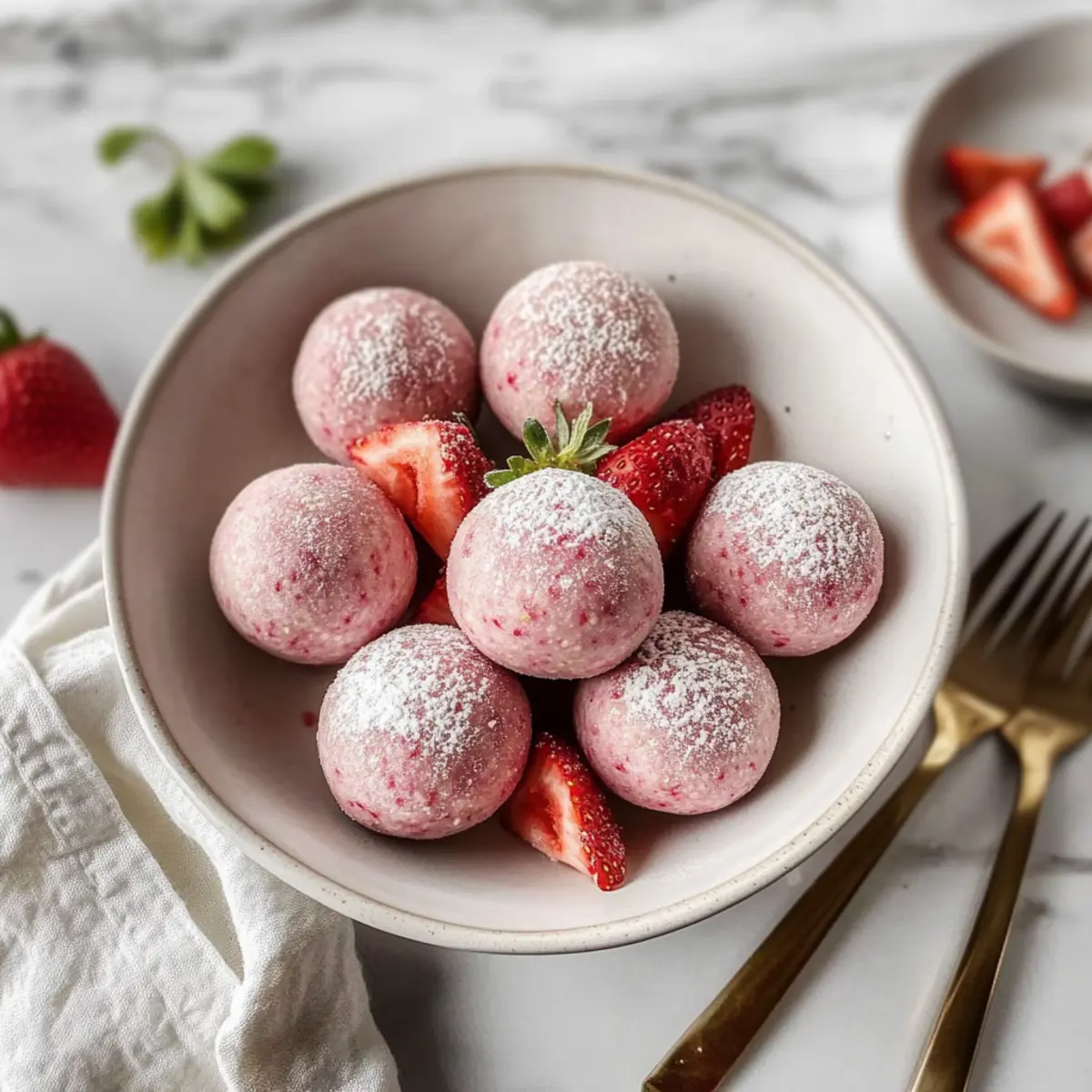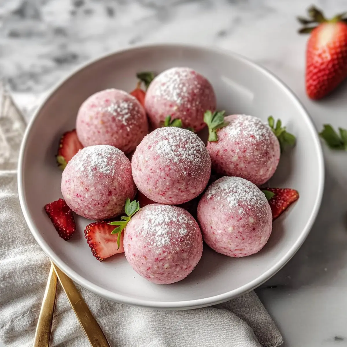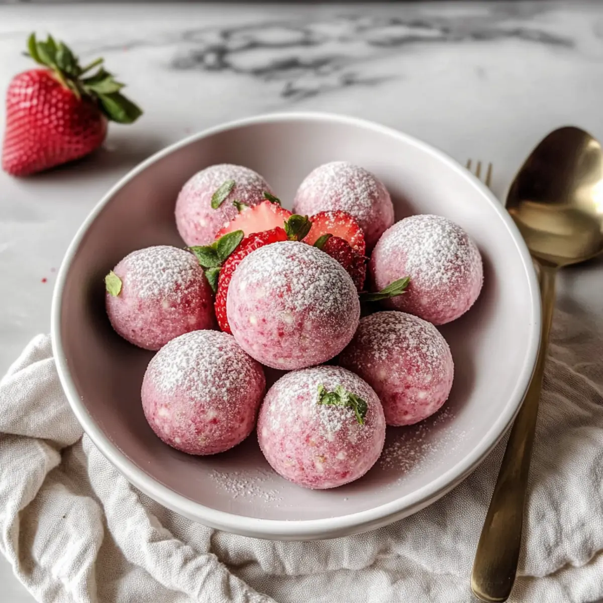 Key Lime: Replace strawberries with fresh lime juice and zest for a tropical escape. The zesty kick of lime makes these balls irresistible, especially on a warm day.