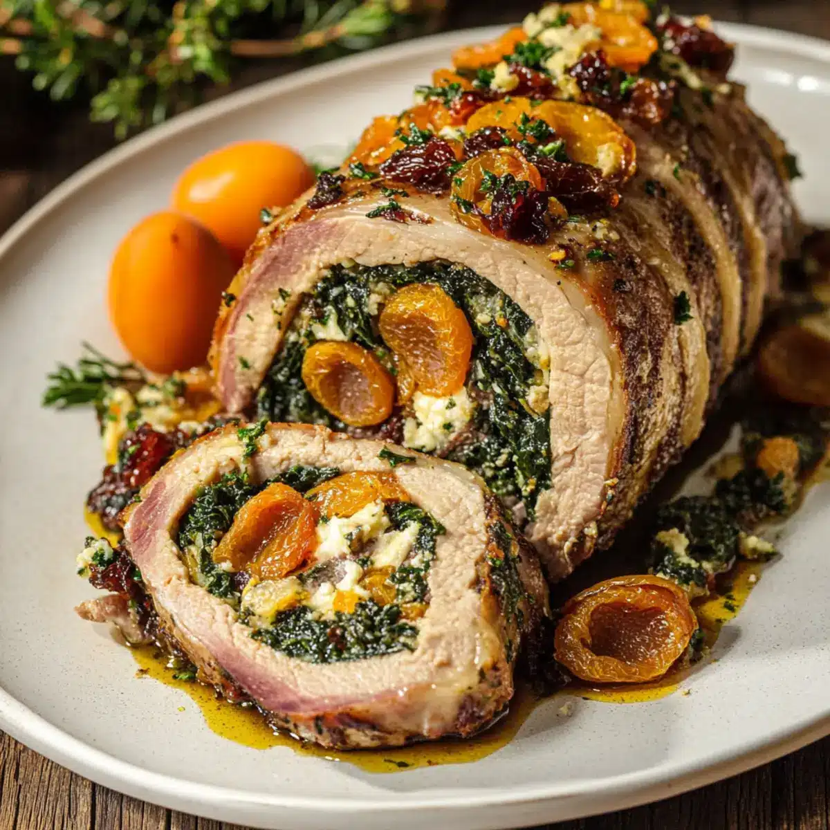 Mouthwatering Stuffed Pork Loin with Apricots and Spinach