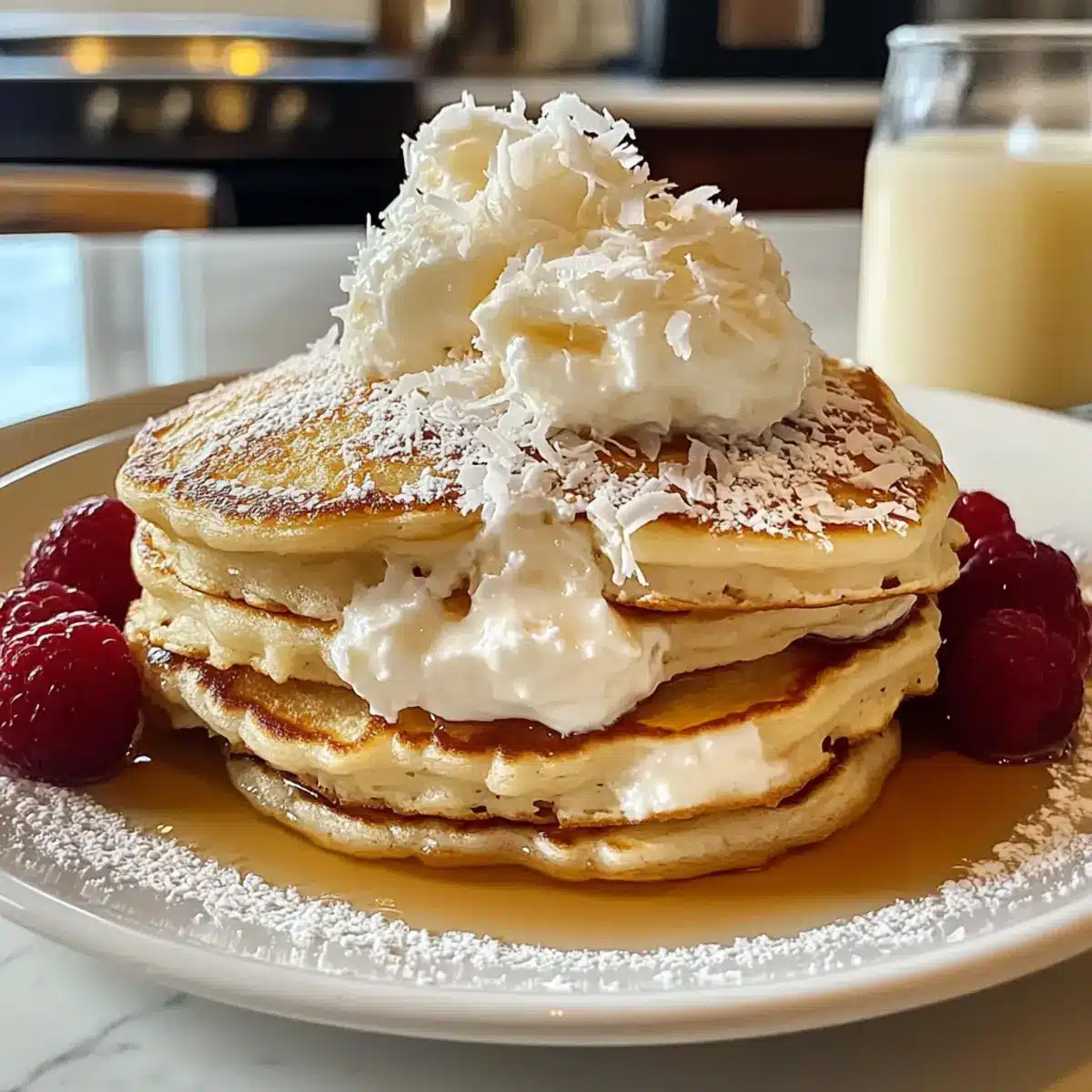 - Whipped Coconut Cream: For a luxurious finish, top with dollops of whipped coconut cream, echoing the coconut flavor in the pancakes.
