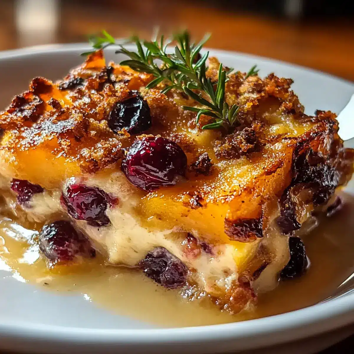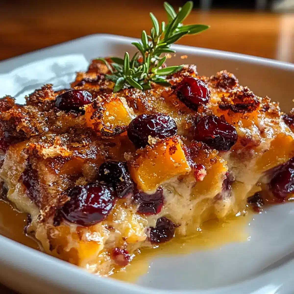 Savory Stuffing: Bulky, herb-stuffed bread brings texture and flavor, making it an ideal partner for the sweet and tangy elements in the gratin.