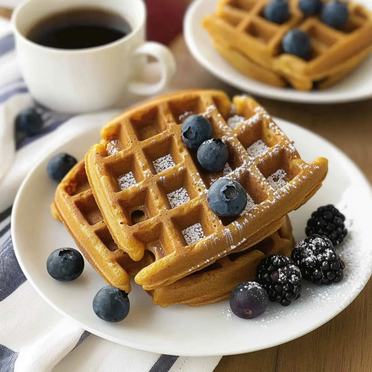 These waffles are a delightful addition to your breakfast lineup, much like our other favorites: Sweet Potato Fries or the cozy Garlic Mashed Potatoes.