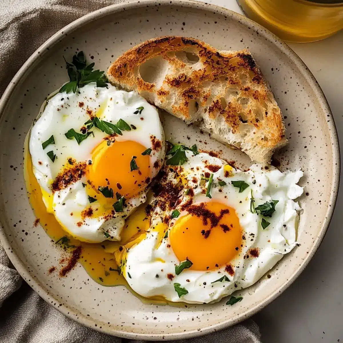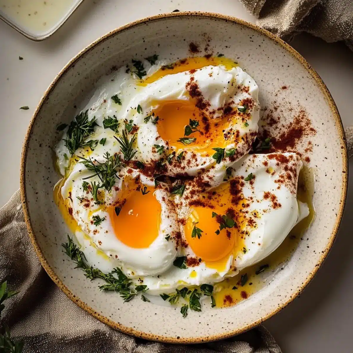 Butter Sauce Variations: If Aleppo pepper isn’t available, red pepper flakes or smoked paprika can impart their unique charm. Adjust to your preferred spice level to enhance your Turkish Eggs flavor profile.
