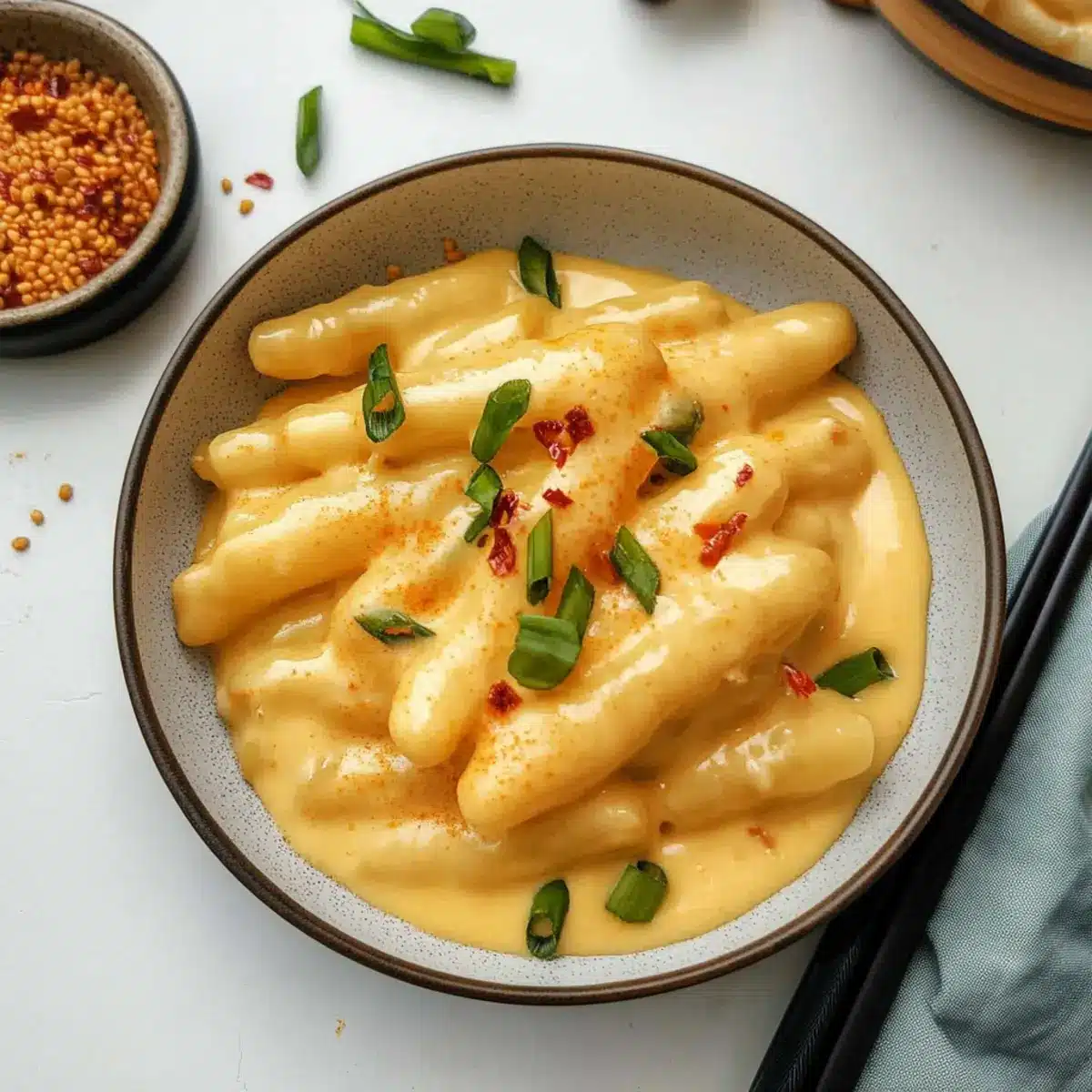 Spicy Twist: Add Korean red pepper flakes to the cheese sauce for a fiery kick that elevates the flavors. Spice lovers will rejoice!