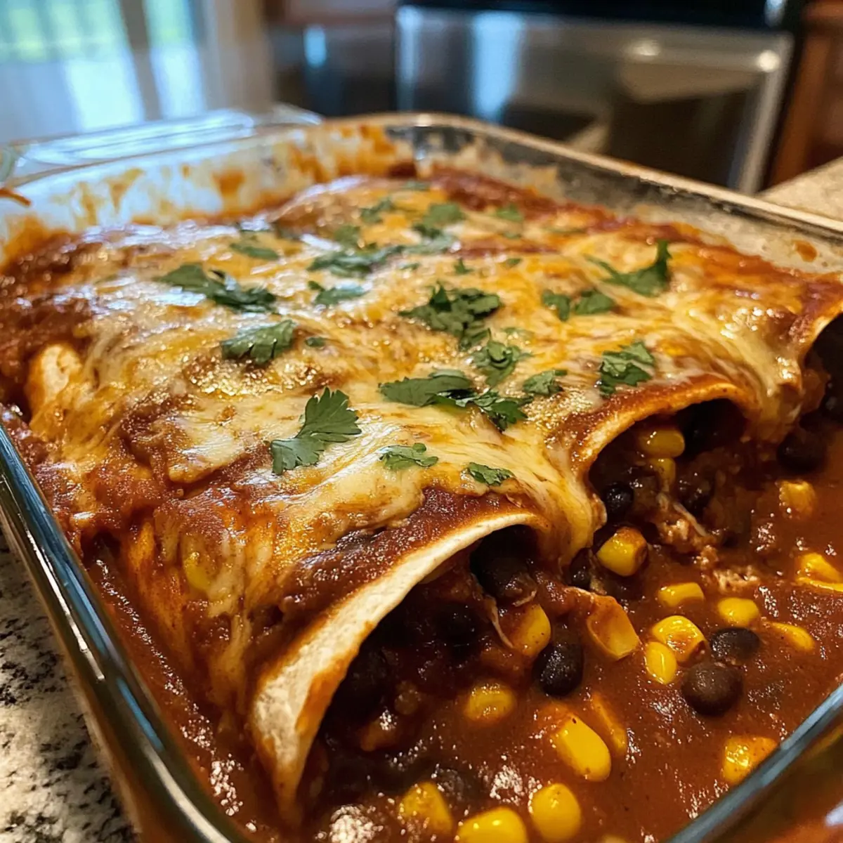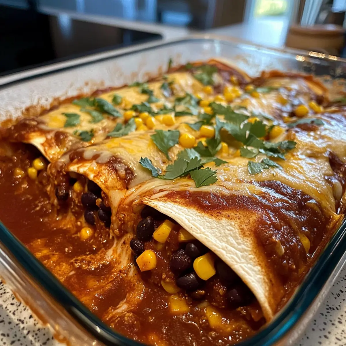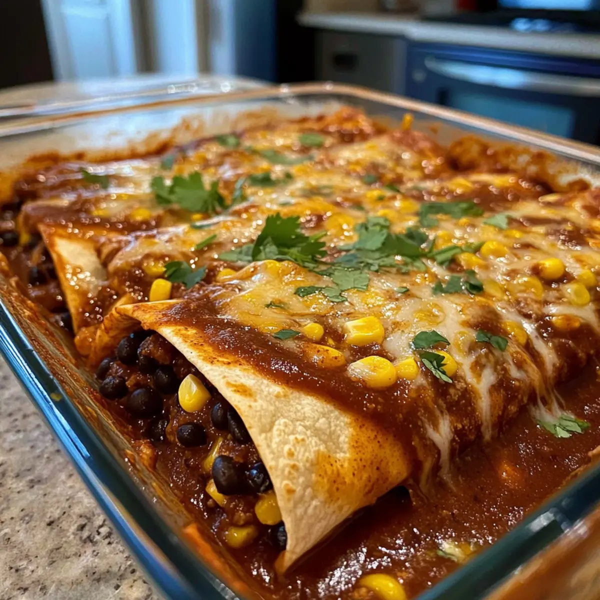 Once baked, remove the dish from the oven and allow the enchiladas to rest for about 5 minutes. This settling time helps the flavors deepen and the filling to set, making it easier to serve. Pair with toppings like avocado or fresh salsa for a delightful finishing touch!