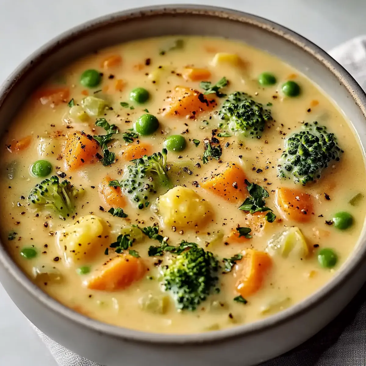 As I stirred the pot, the comforting aroma of garlic and herbs took me back to chilly evenings spent with loved ones, savoring every bite of warm, nourishing meals. This Creamy Veggie Pot Pie Soup beautifully captures that essence, transforming the beloved pot pie into a delightful, cozy soup. With a rich, creamy broth and colorful veggies, it’s not just delicious but also quick to make—ready to warm your soul in about 45 minutes. Whether you’re looking for a hearty weeknight dinner or a satisfying dish that’s both vegetarian and gluten-free, this recipe has you covered. Have you ever craved the warmth of comfort food without the fuss of baking? Let’s dive in and create a bowl of happiness together!